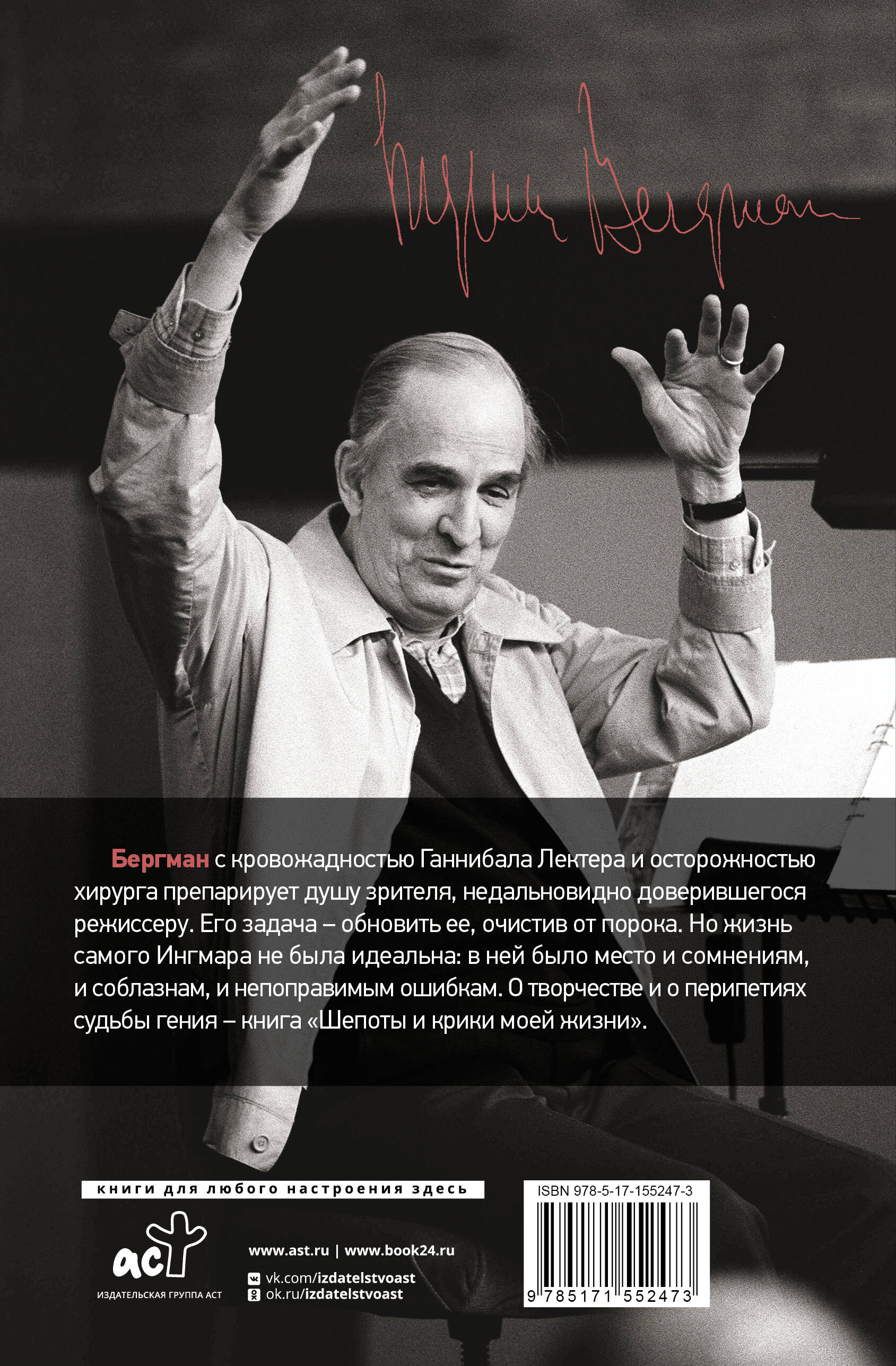 "Шепоты и крики моей жизни" - это откровенное автобиографическое эссе знаменитого шведского режиссера Ингмара Бергмана. В книге он рассказывает о своих почти шестидесяти годах активного творчества в кино и театре, переплетая воспоминания с рассуждениями о природе человеческих отношений, искусства и веры. Бергман с кровожадностью Джека-потрошителя и осторожностью хирурга препарирует душу зрителя, недальновидно доверившегося режиссеру. Его задача - обновить ее, очистив от порока. Но жизнь самого Бергмана не была столь идеальна: в ней было место и сомнениям, и соблазнам, и непоправимым ошибкам. Именно об этих перипетиях судьбы рассказывает книга. Если вы любите творчество Ингмара Бергмана и хотите узнать больше о его жизни и творческом пути, то "Шепоты и крики моей жизни" - это книга, которую вы обязательно должны прочитать.| Издательство | ИЗДАТЕЛЬСТВО "АСТ" |