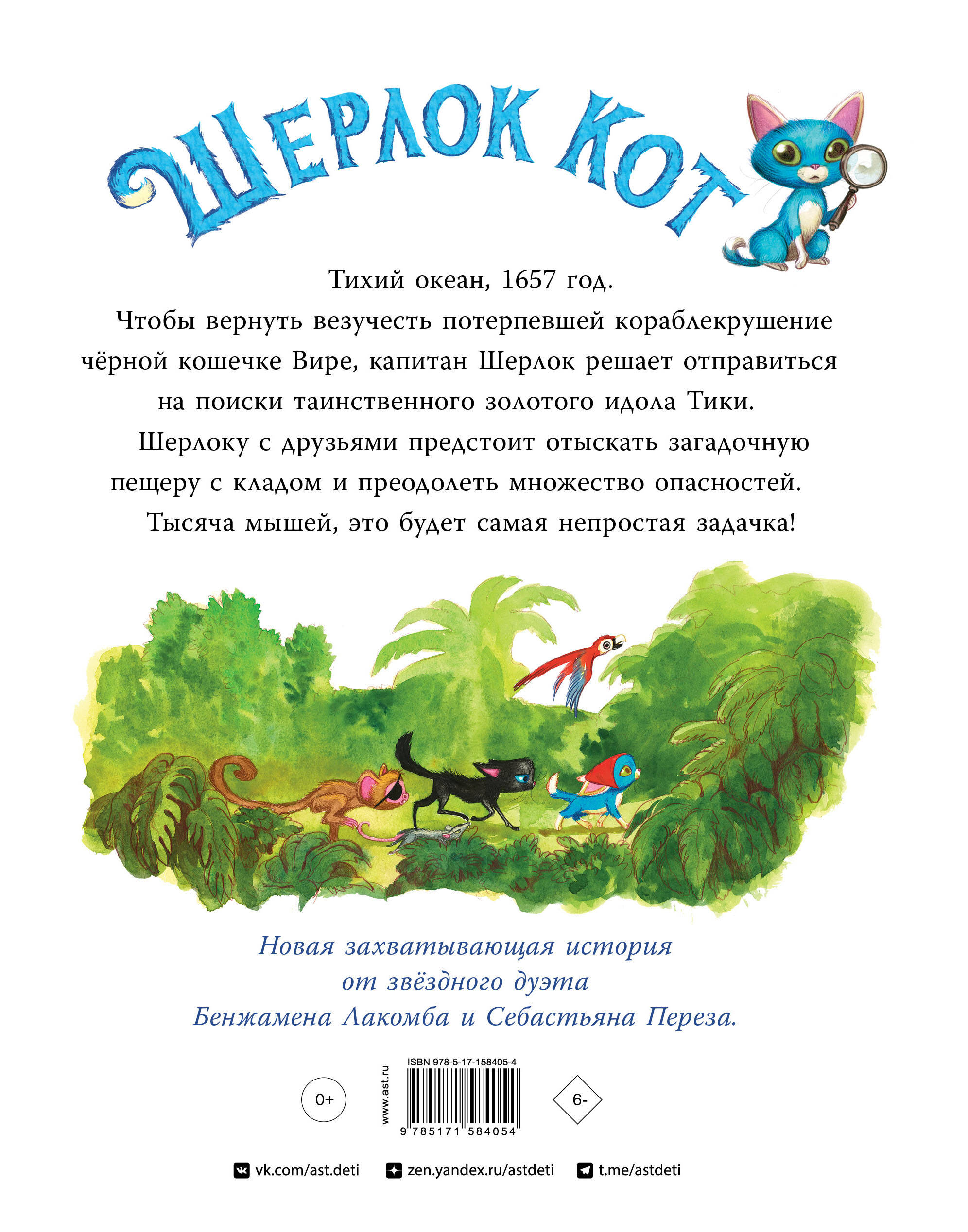 Тихий океан, 1657 год. Чтобы вернуть везучесть потерпевшей кораблекрушение чёрной кошечке Вире, капитан Шерлок решает отправиться на поиски таинственного золотого идола Тики. Шерлоку с друзьями предстоит отыскать загадочную пещеру с кладом и преодолеть множество опасностей. Тысяча мышей, это будет самая непростая задачка! Новая захватывающая история от звёздного дуэта Бенжамена Лакомба и Себастьяна Переза.| Издательство | ИЗДАТЕЛЬСТВО "АСТ" |