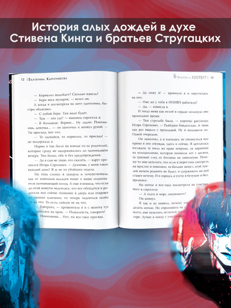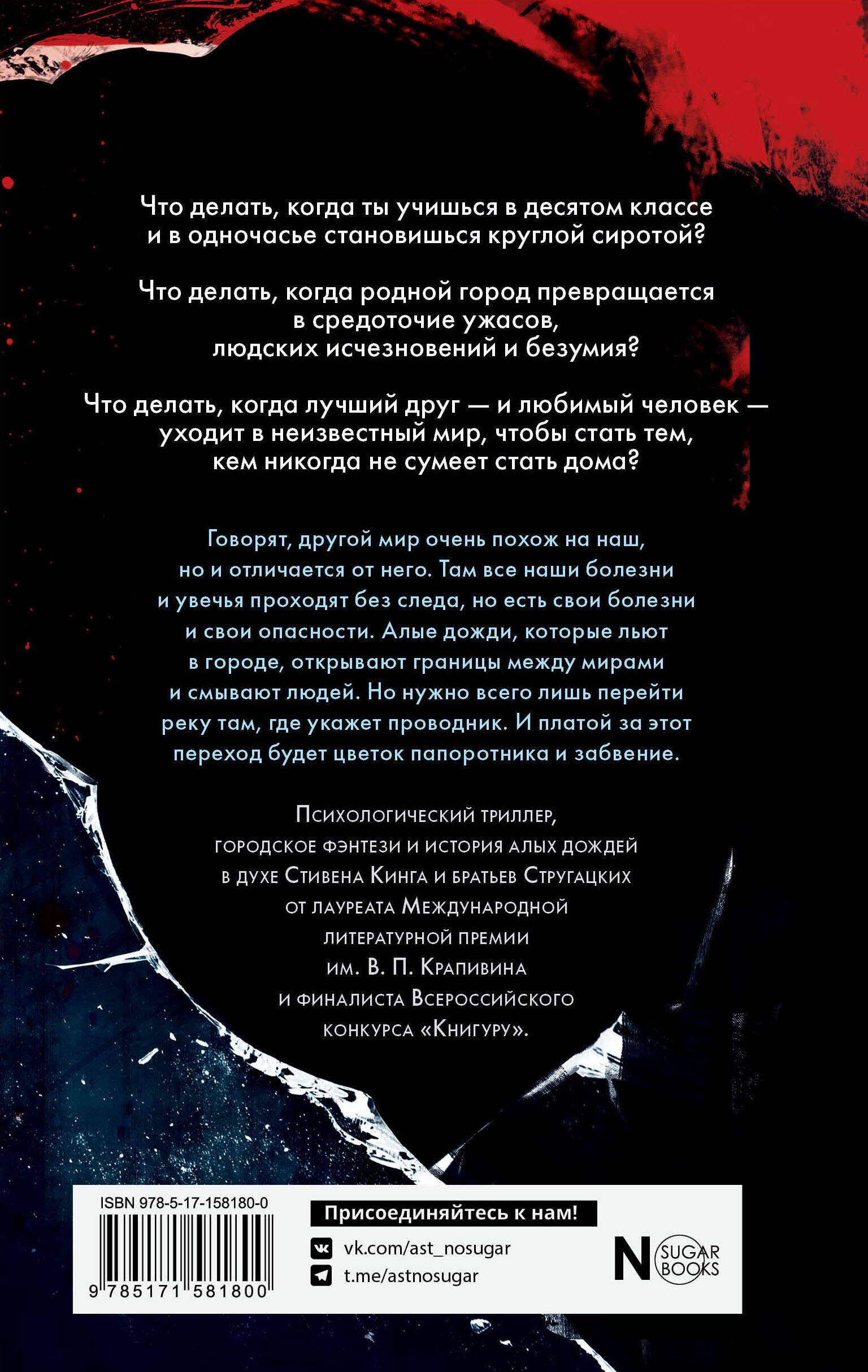 1. Сильный психологический триллер в духе Стивена Кинга и братьев Стругацких от известного российского автора; 2. Мощный текст, который цепляет с первых строк и не отпускает до конца; 3. Переход между мирами и загадочные алые дожди; 4. Таинственный НИИ и цветущий папоротник; 5. Обложка, которая никого не оставит равнодушным;| Издательство | ИЗДАТЕЛЬСТВО "АСТ" |