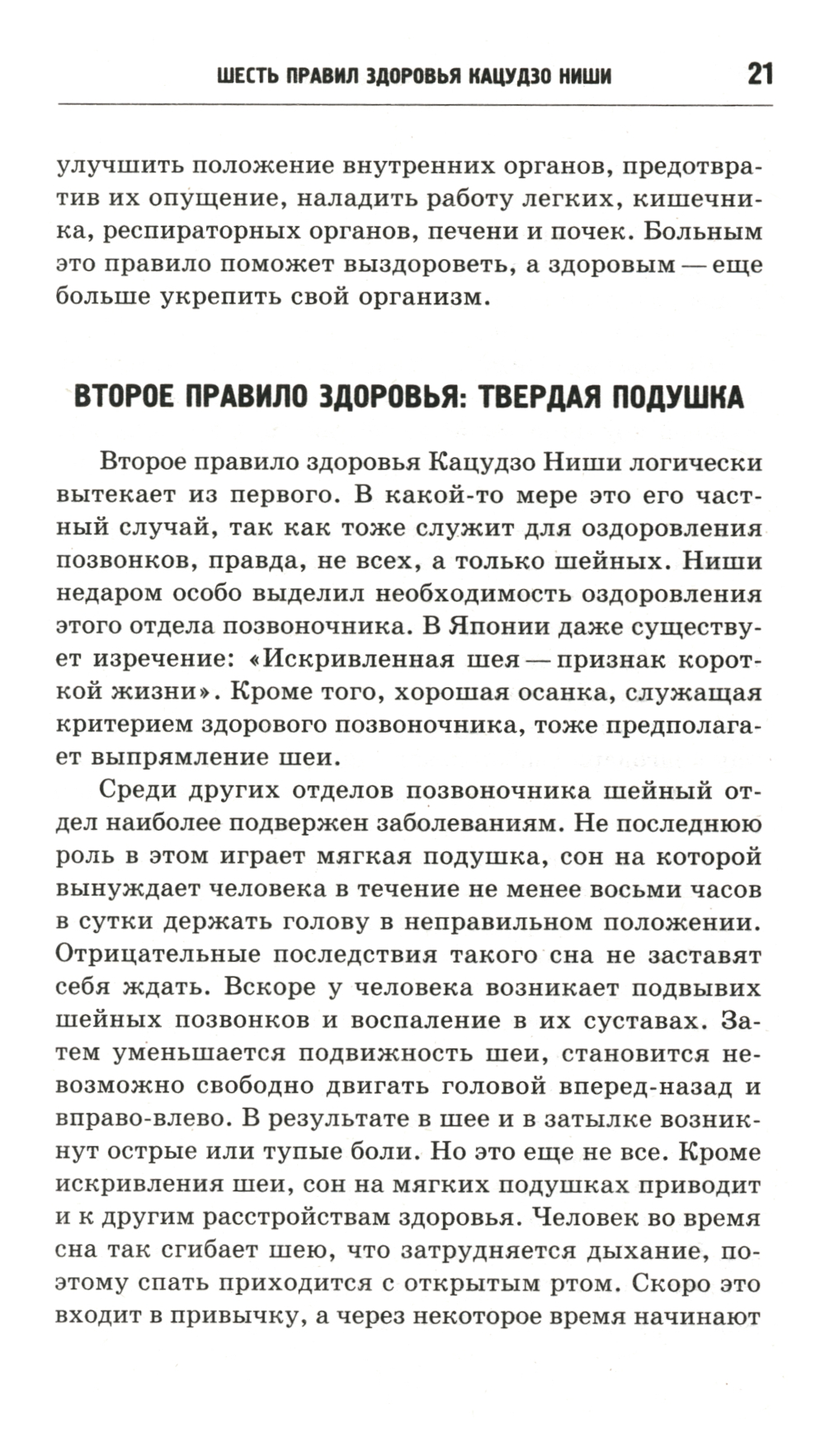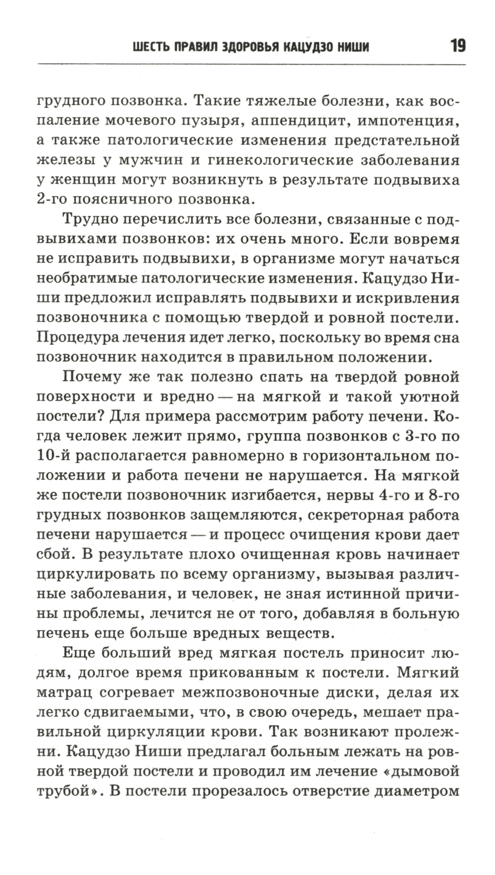 Что делает Шесть правил здоровья вот уже несколько десятилетий одним из самых популярных методов возвращения сил и здоровья? Секрет эффективности системы здоровья Кацудзо Ниши - сочетание древних принципов Востока и новейших медицинских открытий Запада. При внешней простоте и доступности принципы его оздоровительной системы затрагивают все области жизни человека, возвращая им гармонию и легкость бытия. Обращение к естественным движениям, натуральным продуктам, правильному дыханию, разумному распорядку дня помогут исцелиться от недугов и вернуться к исконному состоянию человека - здоровью.| Издательство | Крылов |