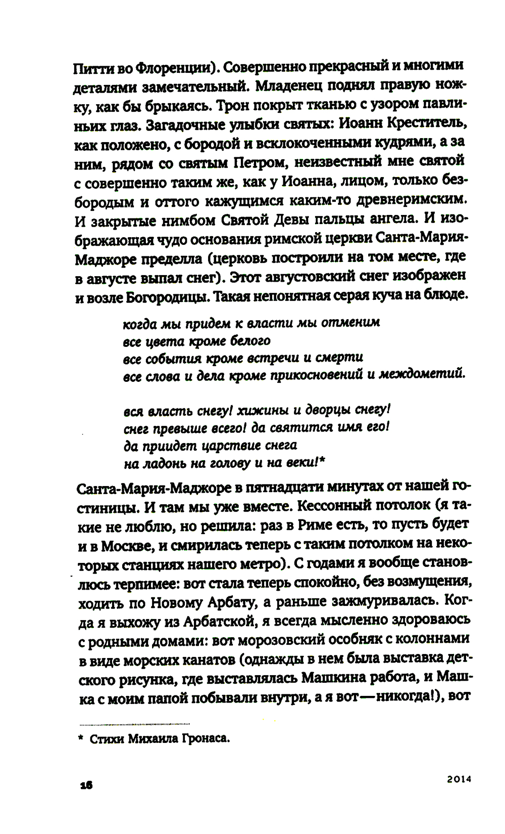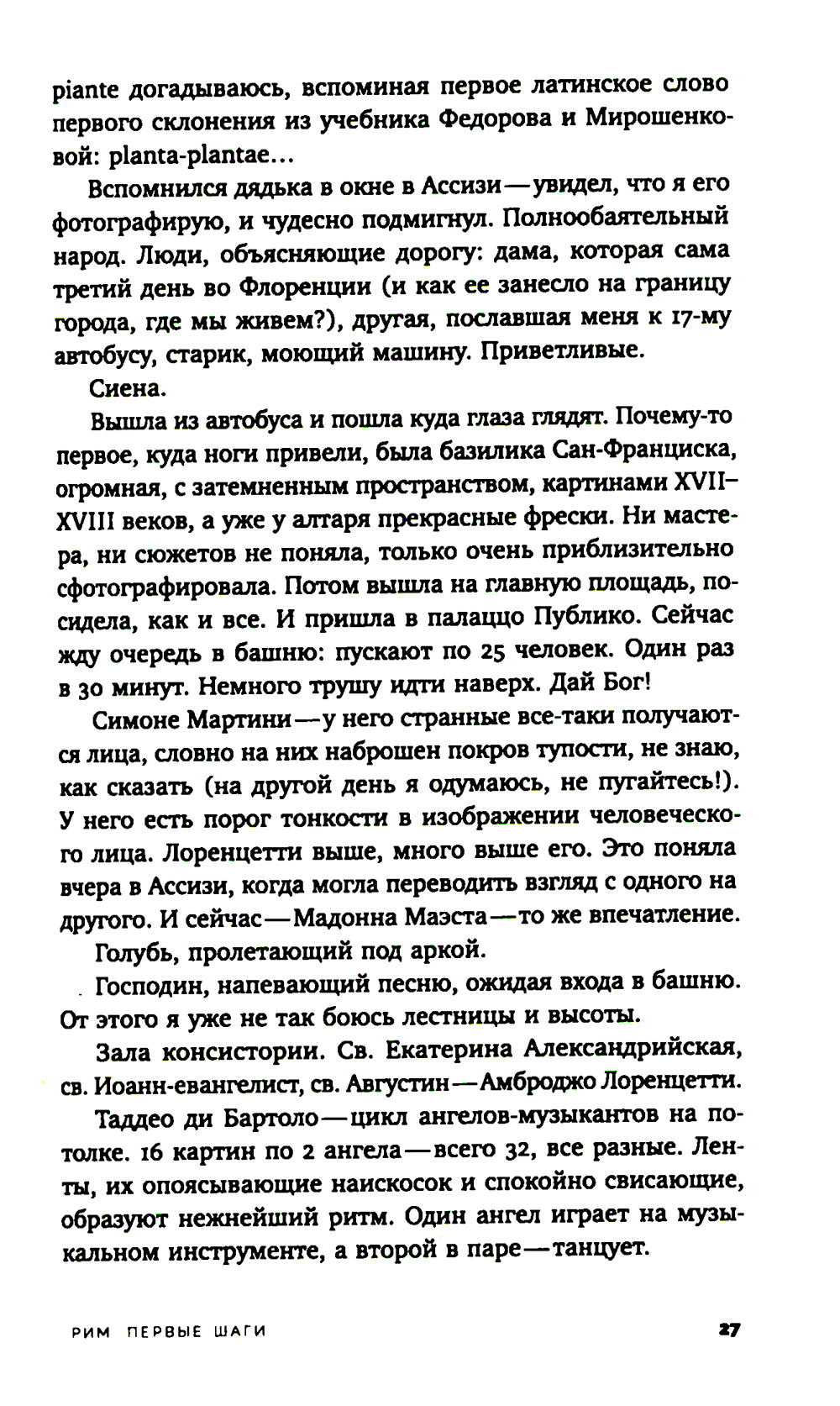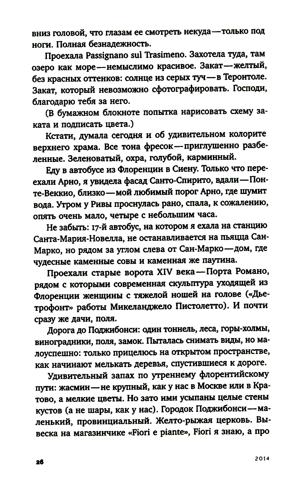 Уже несколько веков Италия притягивает к себе русских писателей, художников и интеллектуалов, представая перед ними тем благодатным краем, где можно получить классическое образование, обрести вдохновение или скрыться от жизненных невзгод. Татьяна Нешумова пишет свой увлекательный дневник итальянских впечатлений, продолжая традицию, сложившуюся в XVIII-XX веках, поддерживая, таким образом, мысленный диалог как с предшественниками, так и с друзьями-современниками. Но есть у книги и параллельный сюжет-процесс превращения поэтессы и филолога в художницу, чьи картины и рисунки «припоминают» шедевры мастеров живописи, равно как и запечатлевают современную итальянскую жизнь. Картины, разлетевшиеся по всему миру и даже попавшие в музейные собрания, слетаются под обложку книги и украшают страницы дневника. Татьяна Нешумова-автор поэтических сборников «Нептица» (1997), «Простейшее» (2004), «Счастливая твоя внука» (гою), «Глухой ушастый» (2014), «Согласно излетая» (2017), редактор-составитель книг Дмитрия Усова (2011), Варвары Малахиевой-Мирович (2013), Льва Горнунга (2019) и других.| Издательство | Новое литературное обозрение |