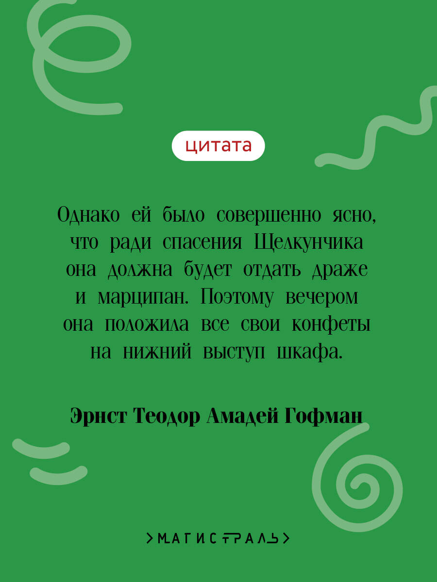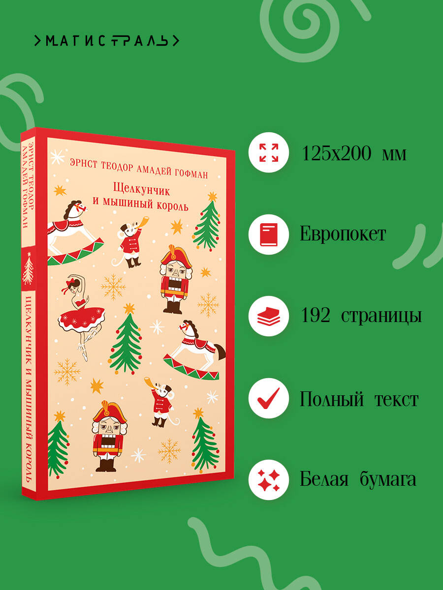 «Чудеснейшие вещи происходят рядом с нами. Просто нужно уметь их увидеть...» - этими словами больше двух веков назад Эрнст Теодор Гофман завершил свою повесть-сказку «Щелкунчик и Мышиный король». Это волшебное произведение по праву считается самой рождественской сказкой. В ночь на Рождество девочка Мари получает необычный подарок - деревянного Щелкунчика. После этого обычная жизнь девочки начинает чудесным образом переплетаться со сказочным миром, в котором игрушки оказываются живыми, а Щелкунчик - его заколдованным правителем. Чтобы преодолеть чары и снова стать человеком, бесстрашному Щелкунчику с помощью доброй и отважной Мари предстоит одолеть семиглавого Мышиного короля… В издании представлен классический перевод без сокращений. Осторожно! Это детям! «Магистраль. Дети» - яркая, удобная серия книг для детей, а также их родителей и учителей. Книги из этой серии можно читать где угодно: в школе, дома, в дороге или на даче. Они легкие и прочные. Сюжетные черно-белые картиночки почти на каждой странице и цветные иллюстрации на вкладках удачно дополняют издание. В серии собраны только лучшие и проверенные временем произведения.| Издательство | ООО "Издательство "Эксмо" |