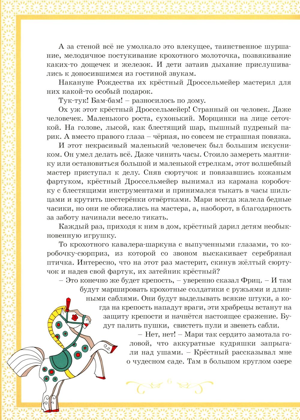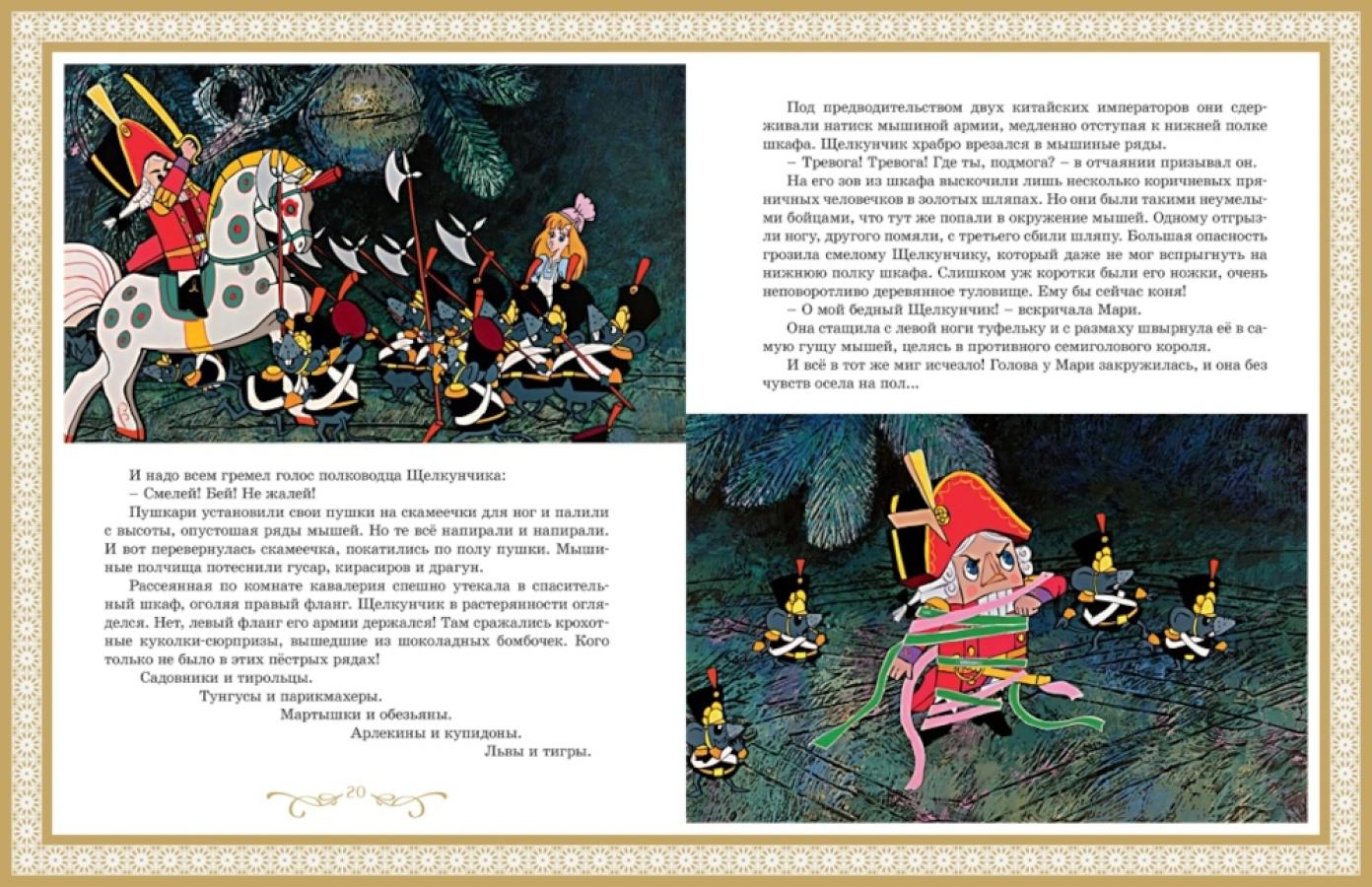 В чудесный миг волшебства персонажи замирают на книжных страницах. Сказка и анимация переплетаются причудливым узором, приглашая читателя в красочный мир любимых мультфильмов. Уникальное издание «Щелкунчик и Мышиный король» Э.Т.А. Гофмана в пересказе Л. Яхнина станет идеальным подарком для каждого, кто хотел бы сохранить тёплое воспоминание из детства на своей книжной полке! Мари не подозревала, сколько волшебных приключений ждет её после встречи с таинственным Щелкунчиком. В канун Рождества, когда игрушки оживают, и всюду звучит чудесная музыка, зло не дремлет. Страшный Мышиный король собирается на бой с Щелкунчиком. Удастся ли героям победить его и снять древнее проклятье? Или развеять чары невозможно? И при чем здесь Кракатук?| Издательство | Махаон |