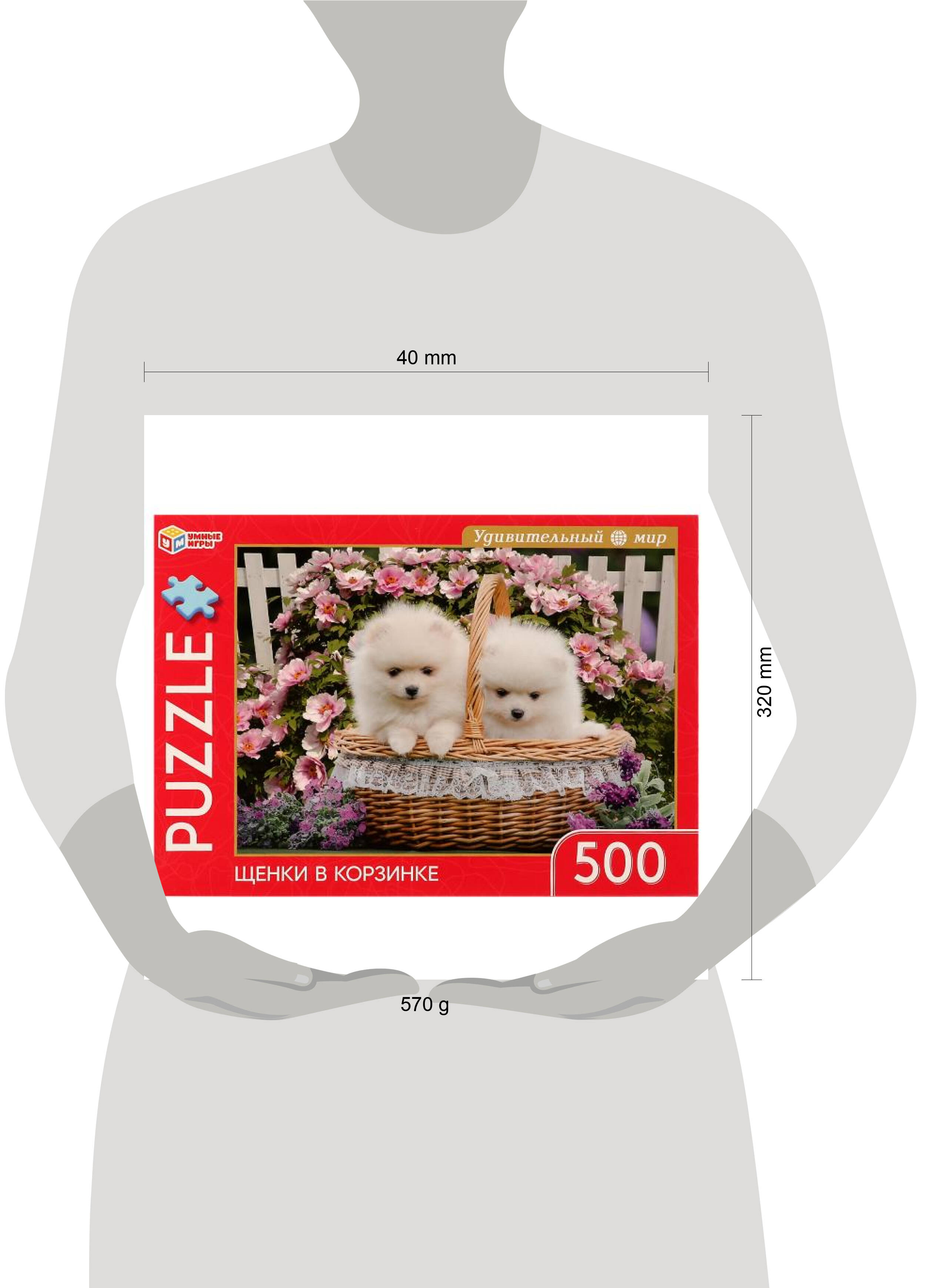 Щенки в корзине. Удивительный мир. Пазлы классические в кор. Пазл 500 деталей. Умные игры в кор.10шт