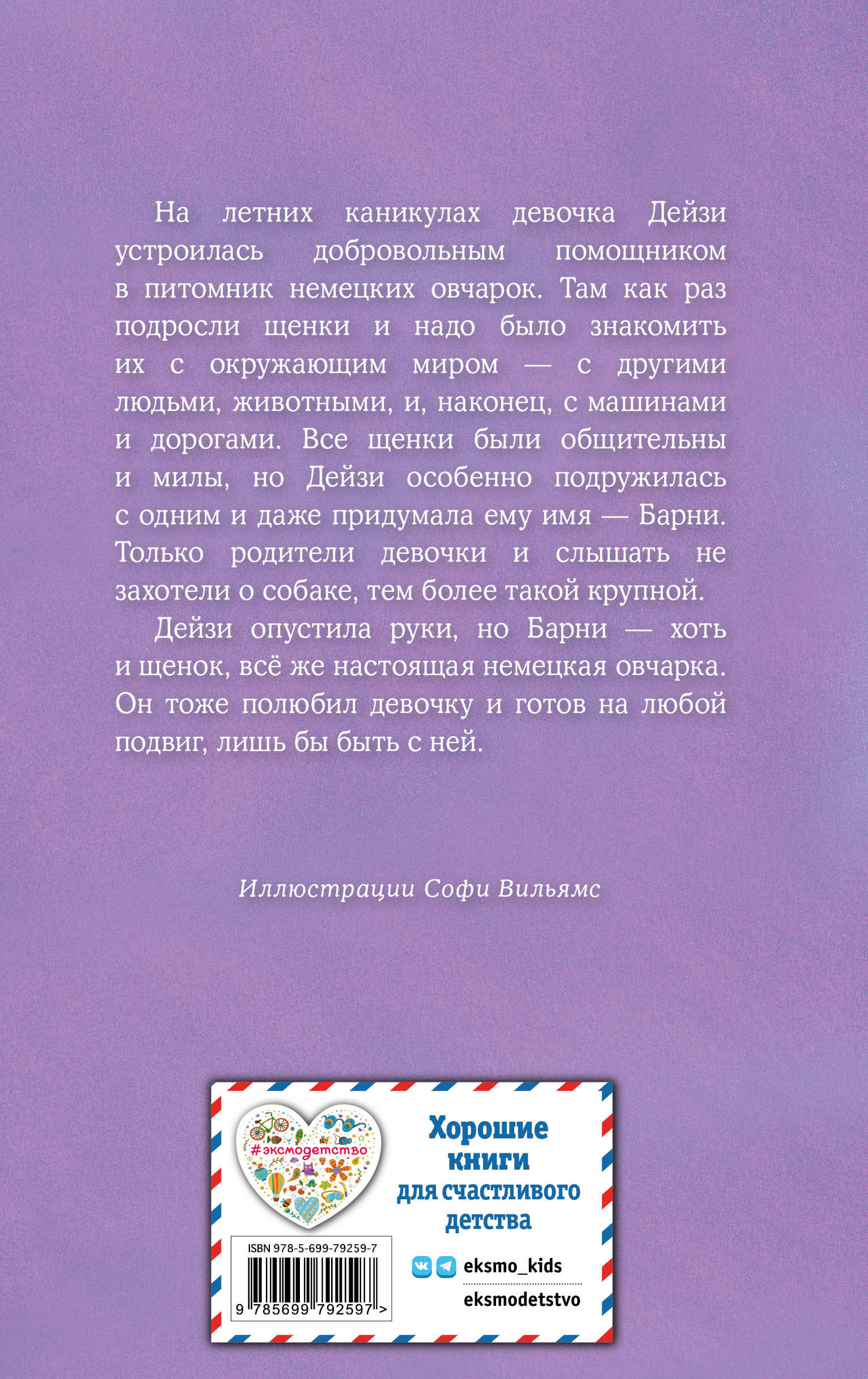 На летних каникулах девочка Дейзи устроилась добровольным помощником в питомник немецких овчарок. Там как раз подросли щенки и надо было знакомить их с окружающим миром - с другими людьми, животными, и, наконец, с машинами и дорогами. Все щенки были общительны и милы, но Дейзи особенно подружилась с одним и даже придумала ему имя - Барни. Только родители девочки и слышать не захотели о собаке, тем более такой крупной.