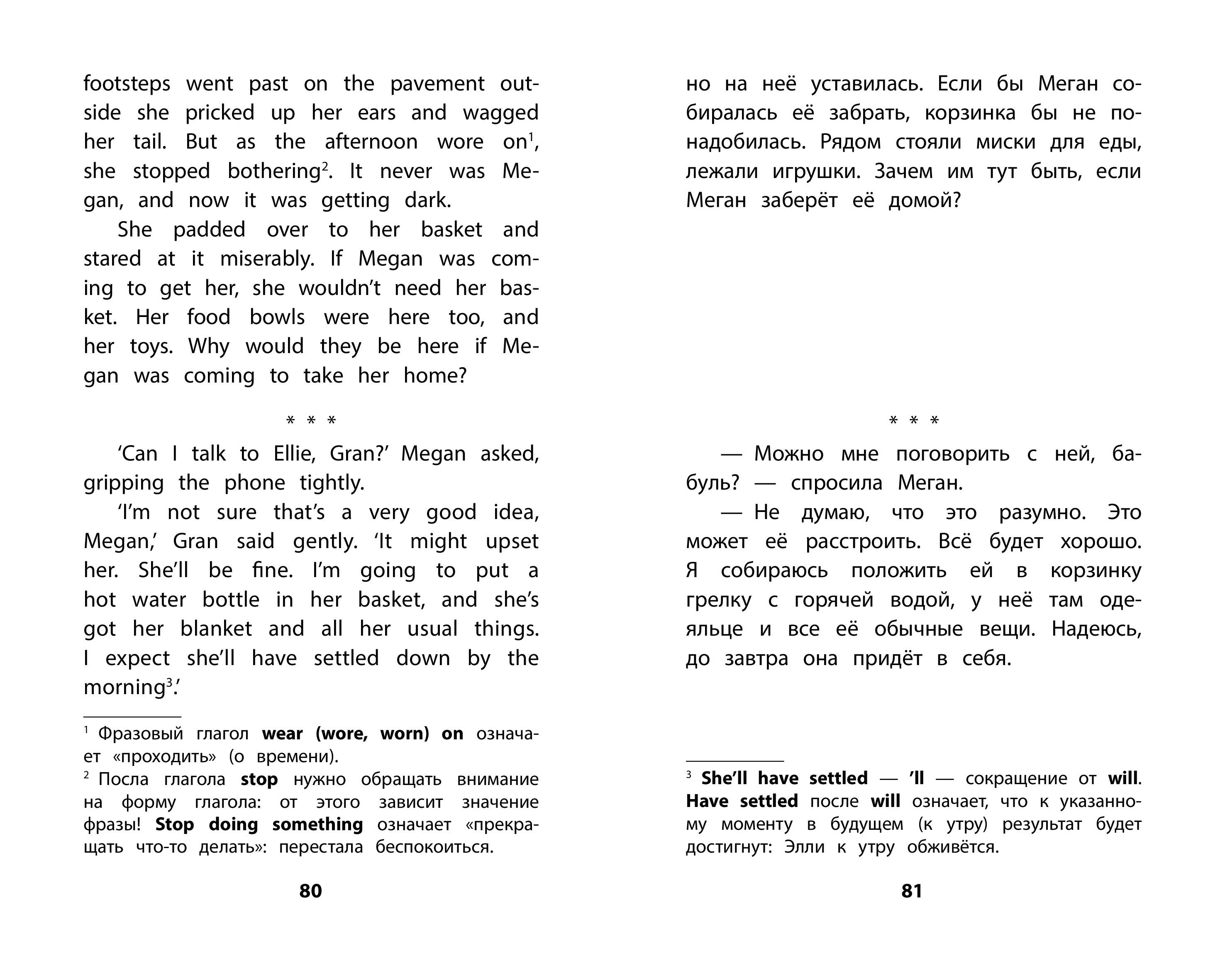 Книги Холли Вебб читают даже дети, которые не любят читать! Ее добрые истории о животных очаровывают маленьких читателей и учат быть добрыми, смелыми, ответственными. Теперь ее книги учат и хорошему английскому! В них оригинальный английский текст и русский перевод расположены точно напротив, так что следить за сюжетом будет легко. Комментарии-сноски расскажут об интересных грамматических конструкциях и полезных словах и выражениях, Увлекательный сюжет - согревающая душу доброта - современный британский английский!