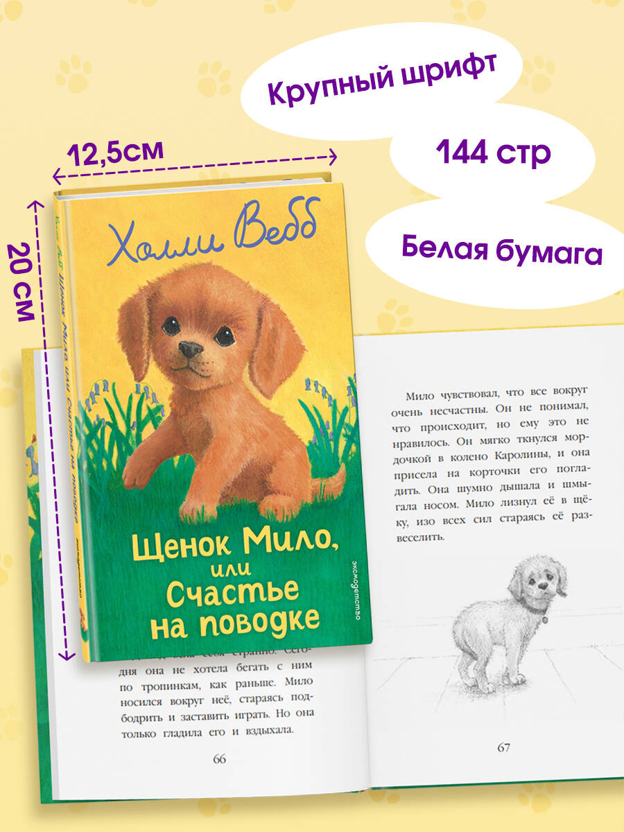 НОВИНКА ОТ ХОЛЛИ ВЕББ - АВТОРА СЕРИИ-БЕСТСЕЛЛЕРА «ДОБРЫЕ ИСТОРИИ О ЗВЕРЯТАХ»! Трогательная история о дружбе девочки и щенка - для мальчиков и девочек 6-9 лет! Джейд мечтает завести собаку, но её папа против. Всё меняется, когда девочка находит объявление и берётся выгуливать чужого щенка по имени Мило. Весёлый, ласковый и умный, он сразу завоёвывает её сердце. Между Джейд и щенком возникает настоящая дружба! Но вдруг выясняется, что хозяйка Мило уезжает... Что же теперь будет с щенком? Увлекательный рассказ о животных поможет ребёнку полюбить книги, научиться читать с удовольствием и навсегда запомнить первую любимую книжку про щенка! Во всех книгах серии законченный сюжет, поэтому их можно читать в любом порядке. Книга с крупными буквами, на белой бумаге, внутри красивые чёрно-белые иллюстрации художницы Софи Вильямс, которые позволят детям переключать внимание, не нагружая глаза. Подходит для первого самостоятельного чтения. Холли Вебб - писательница, популярная во всём мире, но особенно её полюбили в России, что подтверждают многомиллионные тиражи. Читайте другие книги в серии «Добрые истории о зверятах. Мировой бестселлер», а также серии «Котята в музее» и «Мейзи Хитчинс. Приключения девочки-детектива»!| Издательство | ООО "Издательство "Эксмо" |