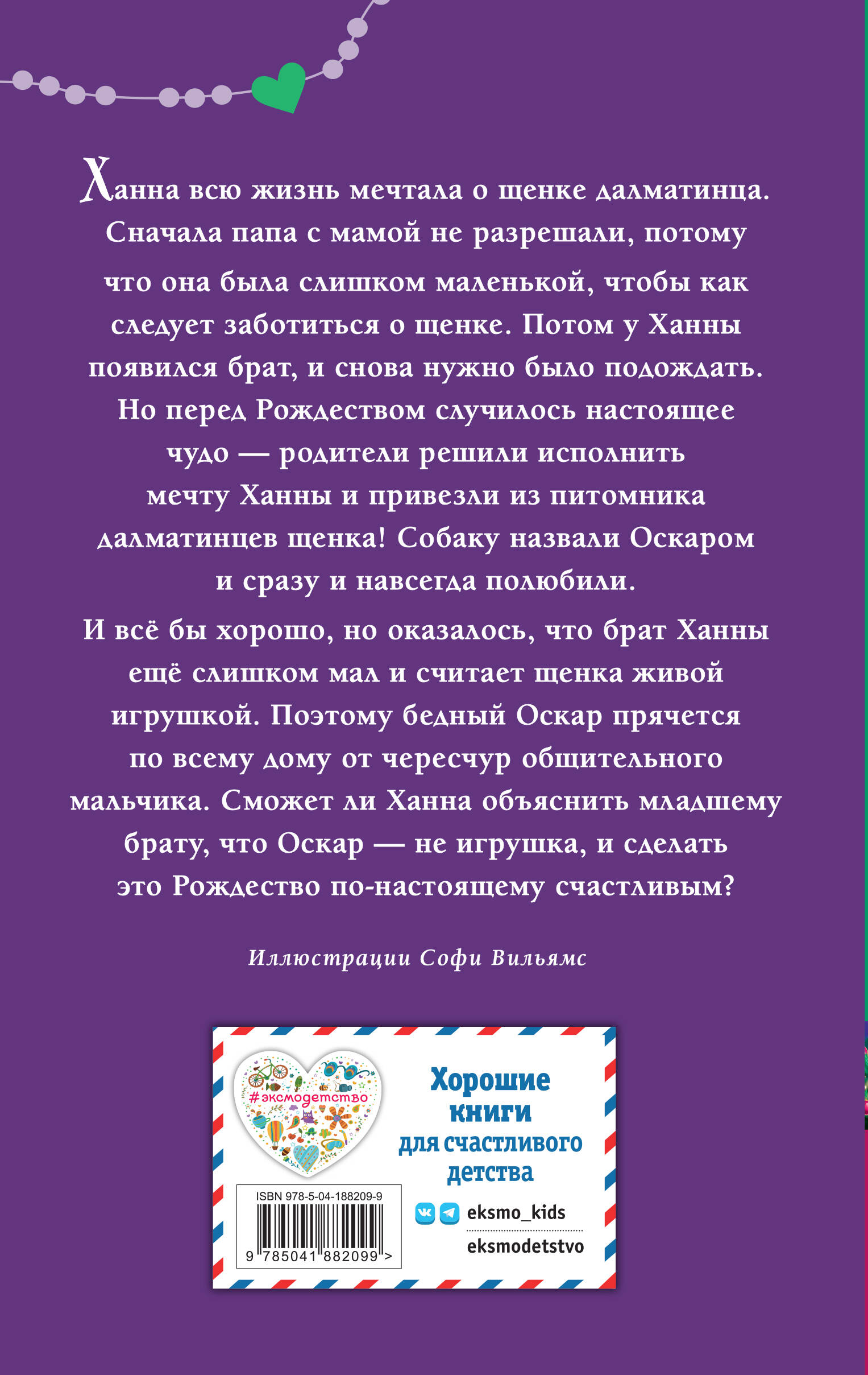 В жизни Ханны случилось настоящее чудо! Родители подарили ей щенка! Малыша назвали Оскаром и сразу и навсегда полюбили. Но оказалось, что брат Ханны ещё слишком мал и считает щенка живой игрушкой. Поэтому бедный Оскар прячется по всему дому от чересчур общительного мальчика. Сможет ли Ханна объяснить младшему брату, что Оскар - не игрушка, и сделать это Рождество по-настоящему счастливым? Каждая книга этой серии - добрая история, в которой без назидания даются уроки об отзывчивости и умении дружить. Холли Вебб давно пишет детские книги и пользуется популярностью во всём мире, но особенно её полюбили в России. Здесь её книги неизменно входят в списки бестселлеров. Множество родителей рассказывают, что их дети просто влюбились в эти истории и начали сами читать. На обложке книги будто бы переливается снег! А внутри - белая бумага, крупный шрифт и очень красивые иллюстрации, которые позволят детям переключать внимание, не нагружая чрезмерно глаза. Очаровательная зимняя сказка для любителей животных и путешествий во времени! Книги подходят для детей от 6-7 лет. Отличный подарок на день рождения, для первоклассника или ребёнка постарше.| Издательство | ООО "Издательство "Эксмо" |