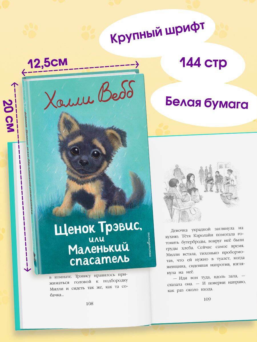 НОВИНКА ОТ ХОЛЛИ ВЕББ - АВТОРА СЕРИИ-БЕСТСЕЛЛЕРА «ДОБРЫЕ ИСТОРИИ О ЗВЕРЯТАХ»! Трогательная история о дружбе девочки и щенка - для мальчиков и девочек 6-9 лет! У Милли появляется щенок Трэвис, и они становятся лучшими друзьями. Когда девочку отправляют к тёте, собака едет с ней, но новый дом кажется им чужим. Постепенно Трэвис и Милли привыкают, но внезапное наводнение разлучает их - щенок остаётся один в затопленном доме. Удастся ли ему спастись? Увлекательный рассказ о животных поможет ребёнку полюбить книги, научиться читать с удовольствием и навсегда запомнить первую любимую книжку про щенка! Во всех книгах серии законченный сюжет, поэтому их можно читать в любом порядке. Книга с крупными буквами, на белой бумаге, внутри красивые чёрно-белые иллюстрации художницы Софи Вильямс, которые позволят детям переключать внимание, не нагружая глаза. Подходит для первого самостоятельного чтения. Холли Вебб - писательница, популярная во всём мире, но особенно её полюбили в России, что подтверждают многомиллионные тиражи. Читайте другие книги в серии «Добрые истории о зверятах. Мировой бестселлер», а также серии «Котята в музее» и «Мейзи Хитчинс. Приключения девочки-детектива»!| Издательство | ООО "Издательство "Эксмо" |