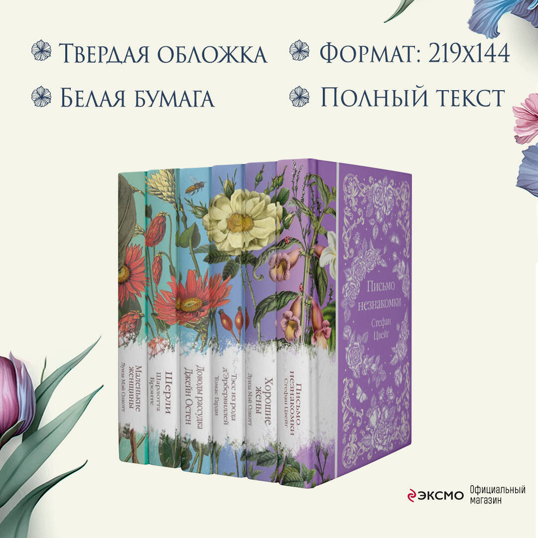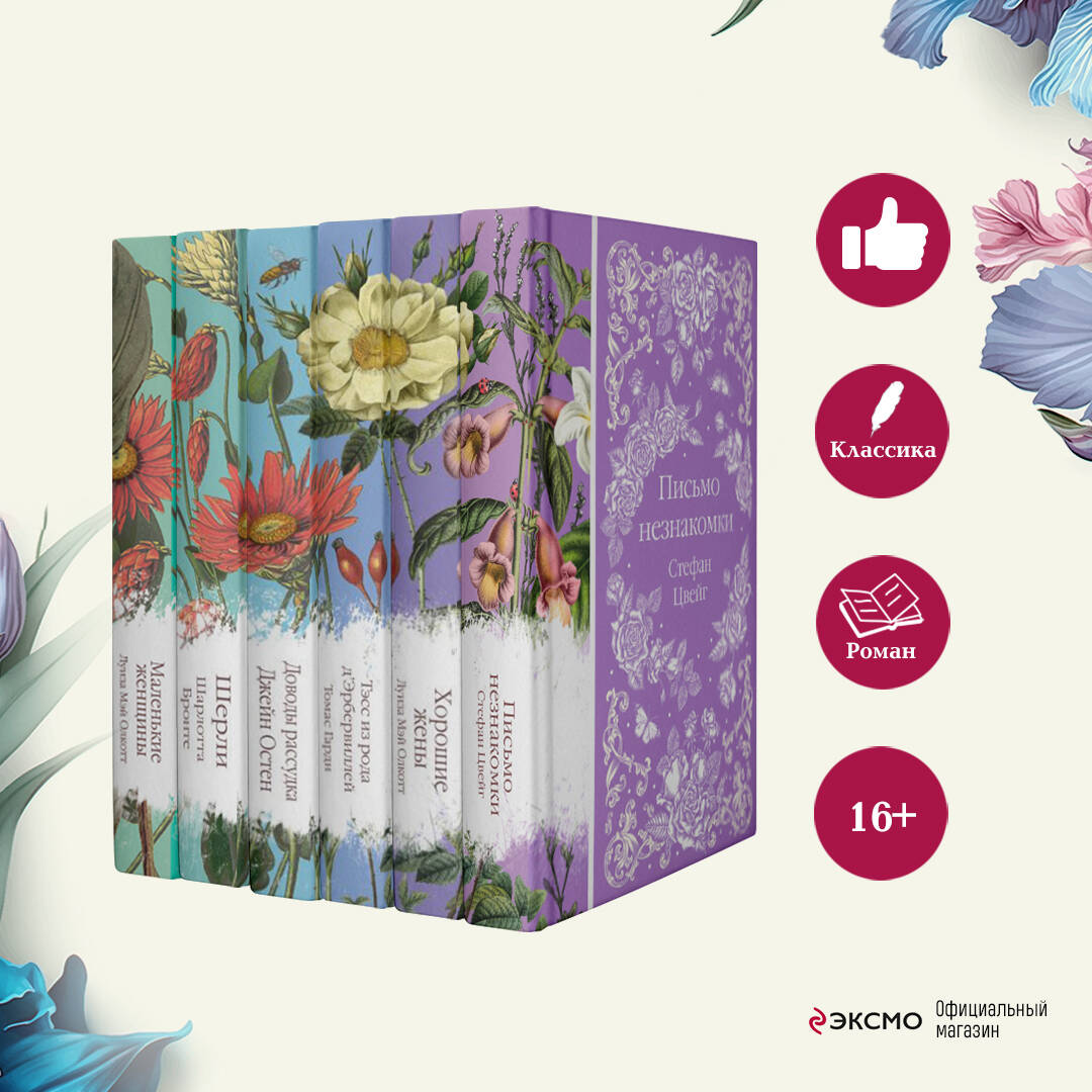 Коллекция элегантной классики - это пронзительная нежность, это сад, который шагнул к вам на книжную полку. Корешки коллекции собирают на полке цветочный орнамент. В комплект вошли «Маленькие женщины», «Шерли», «Доводы рассудка», «Тэсс из рода д'Эрбервиллей», «Хорошие жены» - пять классических женских романов, которые приятно читать и приятно дарить.| Издательство | ООО "Издательство "Эксмо" |