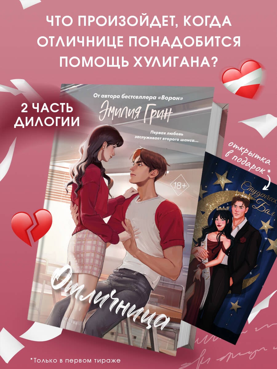 Новинка популярного автора сентиментальной прозы - Эмилии Грин. Ее книги выпущены тиражом свыше 200 тысяч экземпляров. «Отличница» - заключительная часть дилогии «Шипы первой любви», которая расскажет историю Розы и Максима. Роман моментально обрел популярность на портале Литнет, набрав более 1,6 миллиона прочтений, и вошел в топ «Студенческих романов». Внутри атмосферная верстка, и только в первом тираже в подарок открытка! Когда-то Максим Леднев был трудным подростком на грани отчисления, и, чтобы он не вылетел из школы, мне приходилось помогать ему с учебой. Казалось, наша любовь способна преодолеть все преграды, но, увы, я жестоко заблуждалась, и доверие, которое выстраивалось месяцами, испарилось за считаные секунды… По иронии судьбы, теперь мой бывший парень - один из самых популярных студентов университета, подающий надежды футболист, который работает вместе с моей некогда лучшей подругой Леной Трофимовой. И, в довершение всех моих бед, мы с Ледневым поменялись ролями - теперь от него зависит мой зачет по физической культуре… Это история о прощении, страсти и ревности, взрослении и предательстве. Понравится поклонникам «Ворона» Эмилии Грин, «Пепла» Ники Сью, а также романа «Твое сердце будет разбито» и «По осколкам твоего сердца» Анны Джейн. Читайте книги автора! Дилогия «Шипы первой любви»: - «Прогульщик» - «Отличница» Дилогия «На крыльях любви»: - «Ворон» - «Лебедь» Дилогия «На крыльях любви» (в подарочном оформлении) Одиночные истории: - «Хулиган» - «Леди и бродяга» - «Укради мое сердце, Тайный Санта!»| Издательство | ООО "Издательство "Эксмо" |