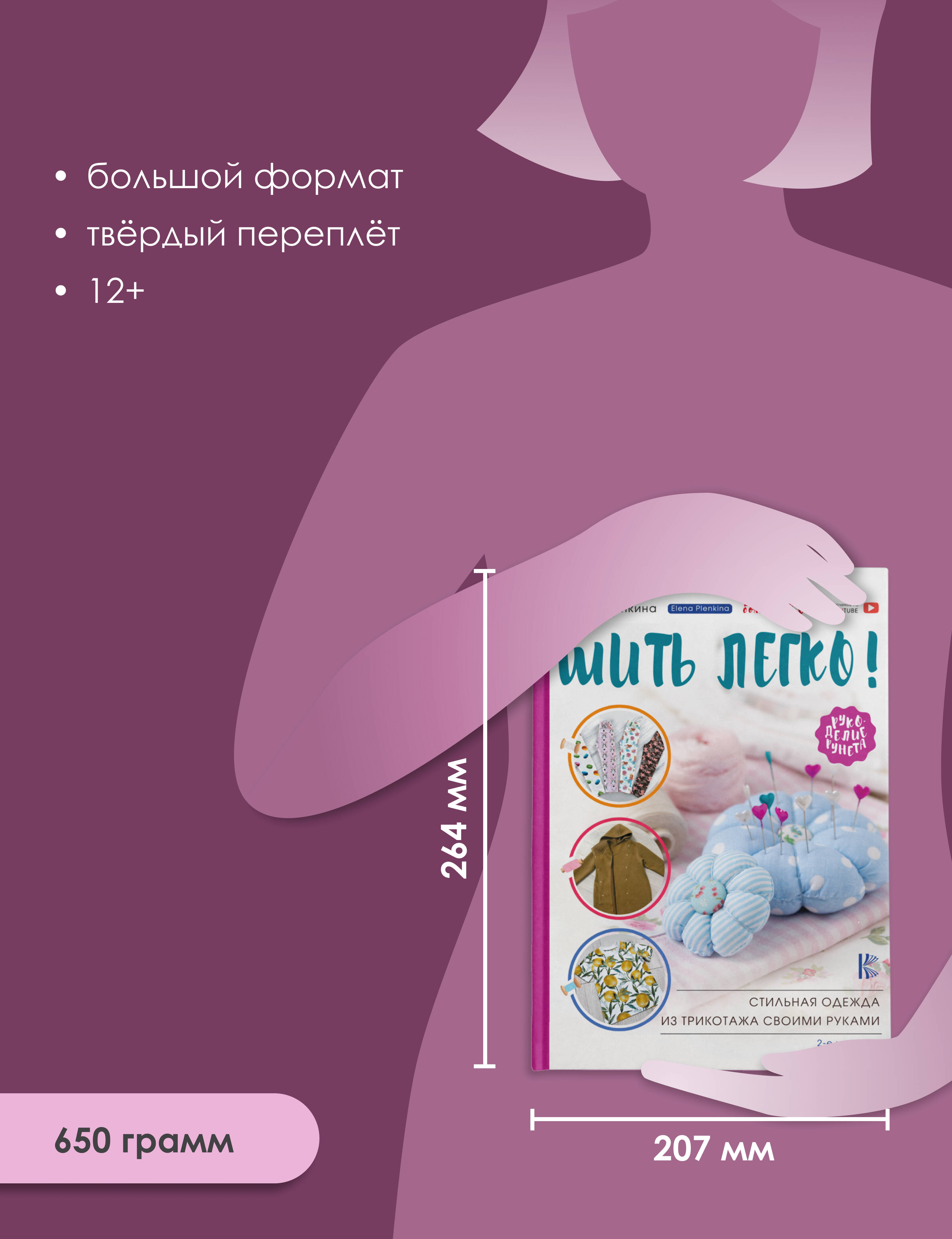 Елена Пленкина - популярный YouTube-блогер с аудиторией более 300 тысяч подписчиков, талантливая рукодельница, швея-самоучка с огромным опытом и знаниями, которыми она решила поделиться с читателями. Вы держите в руках отличную книгу, благодаря которой сможете научиться шить самые нужные базовые вещи из трикотажа для себя и своих детей. Справиться с пошивом сможет даже начинающая рукодельница, ведь автор подробно расскажет обо всех нужных инструментах, техниках шитья, поможет понять, какие бывают виды трикотажа, раскроет все секреты и особенности работы с этим интересным материалом, а также научит грамотно строить выкройки для пошива изделий. Вместе с автором вы сможете сшить различные футболки, свитшоты, толстовки с капюшоном, спортивные штаны, а позже, набравшись опыта и умений, с легкостью справитесь с пошивом пальто.| Издательство | ИЗДАТЕЛЬСТВО "АСТ" |