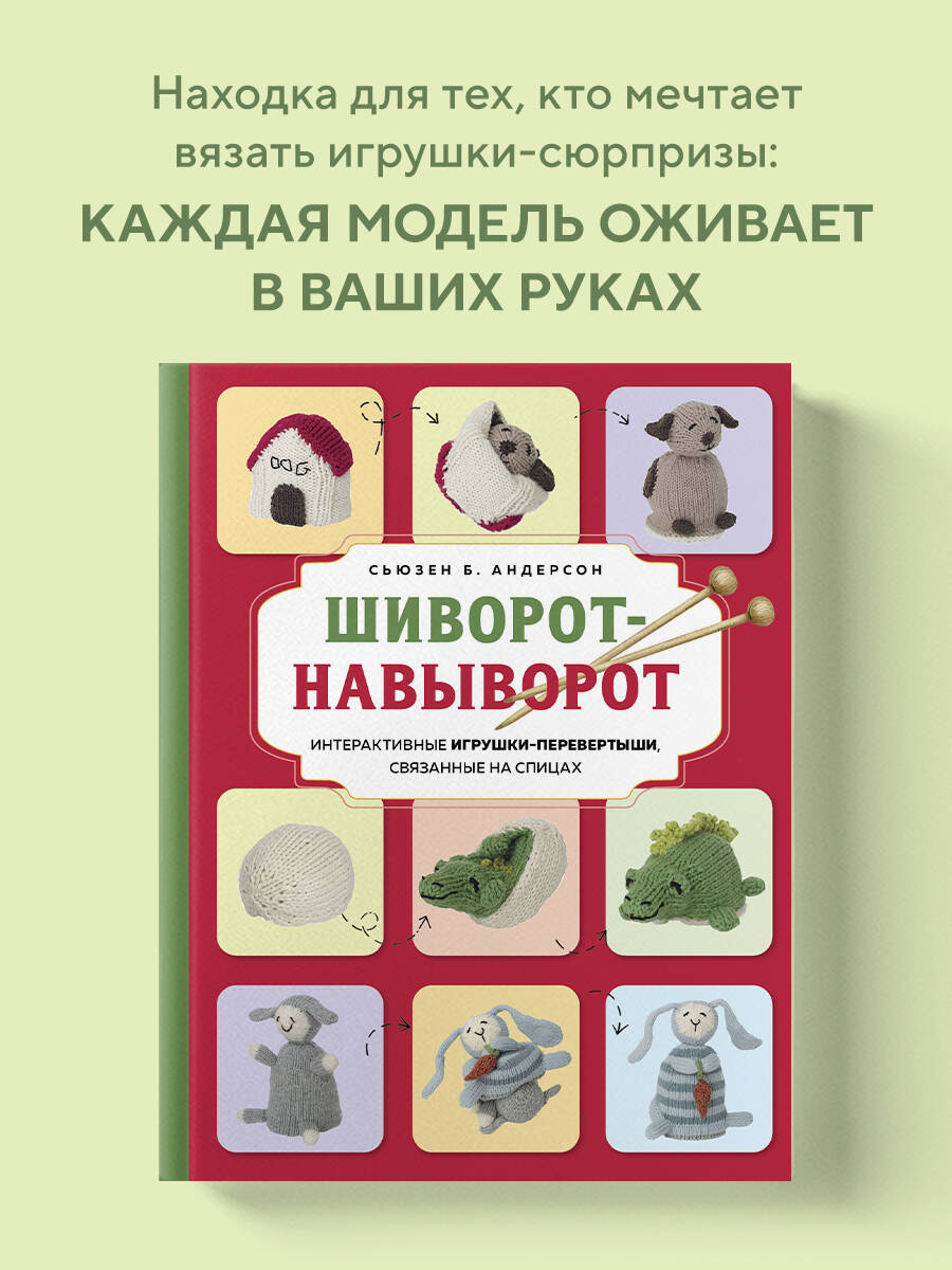 «На страницах книги вы найдете: пару проектов, где звери "вылупляются" из яйца; куколку с сюрпризом внутри; поросят в одеяле; крошечную фею, притаившуюся в цветке; винтажную игрушку из сказки; собаку в будке и многое другое. Одни игрушки переворачиваются вверх тормашками, другие выворачиваются наизнанку; а еще есть традиционная кукла-перевертыш, которая вяжется как цельное изделие без единого шва». - Сьюзен Б. Андерсон Вязаные игрушки-перевертыши Сьюзен Б. Андерсон определенно попадают в категорию «любимая интерактивная игрушка. Дети такое обожают, ведь это настоящее волшебство: вязаная черепаха волшебным образом превращается в лягушку, а лев - в слона, из яйца вылупляется цыпленок, а куколка меняет наряд в мгновение ока! А главное - взрослые реагируют на такие игрушки не менее восторженно, чем дети! В этой книге каждый найдет что-то для себя: проекты можно подстраивать под свой вкус и менять героев, размер и форму каждой игрушки. С работой справятся люди с разным уровнем мастерства - новички сначала потренируются на самом простом проекте «Веселая мышь, грустная мышь», а уже затем приступят к более сложным игрушкам - они расположены по возрастанию уровня сложности. Кроме того, автор включила в книгу уроки по необходимым техникам вязания, они пригодятся, если вы только начинаете учиться вязать и еще не знакомы с базовыми приемами. Вы наверняка сможете повторить каждую из описанных в книге игрушек, а работа будет идти легко и весело. • Понятные инструкции и объяснения. • Великолепные иллюстрации. • Интересное, увлекательное вязание. • Очаровательные интерактивные игрушки для детей. Доставайте запасы и остатки пряжи - они идеально подойдут для вязания игрушек, ведь материала для них нужно совсем немного. Возьмите в руки спицы и погрузитесь в мир веселого и креативного вязания.| Издательство | ООО "Издательство "Эксмо" |