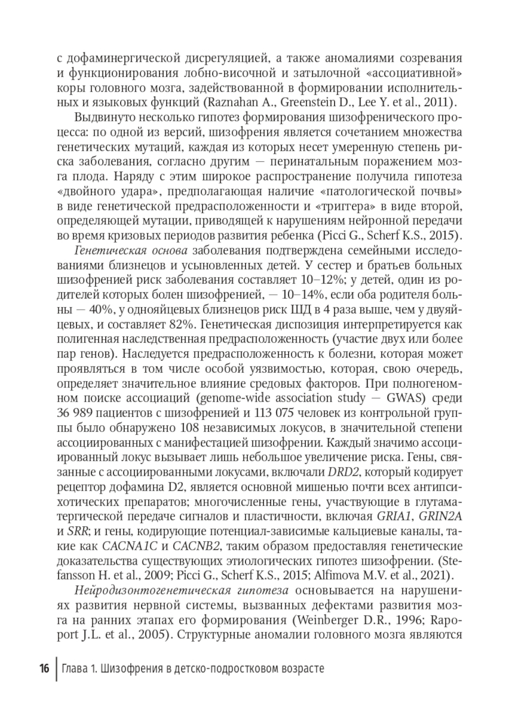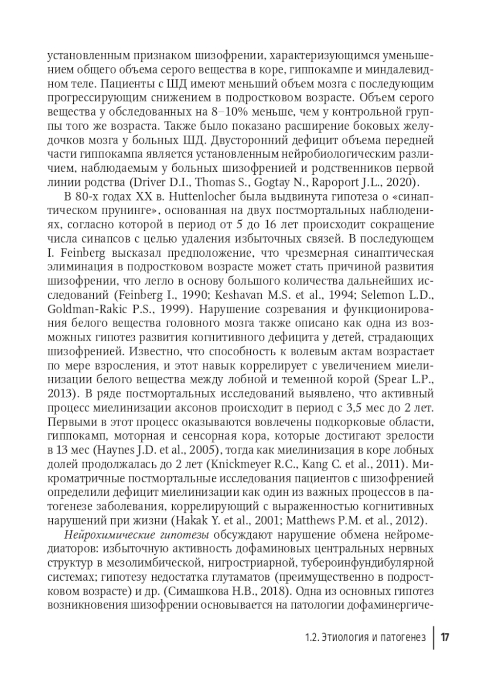 В научно-практическом руководстве представлено современное состояние проблемы шизофрении в детско-подростковом возрасте с учетом фундаментальных исследований, проведенных в клинике Научного центра психического здоровья, а также интеграции достижений отечественной и зарубежной психиатрии. Отражены клинико-психопатологические, клинико-биологические и клинико-социальные аспекты решения данной проблемы. Приведены современные подходы к ранней диагностике, профилактике, абилитации и реабилитации, подробно изложены медикаментозные и немедикаментозные методы терапии при шизофрении в детско-подростковом возрасте. Руководство предназначено психиатрам, педиатрам, неврологам, психологам, дефектологам, педагогам и другим специалистам, работающим в медицинских, образовательных и социальных учреждениях.| Издательство | ГЭОТАР-Медиа |