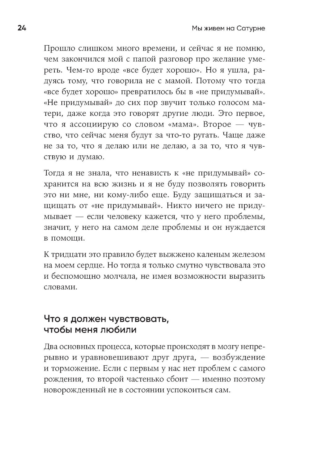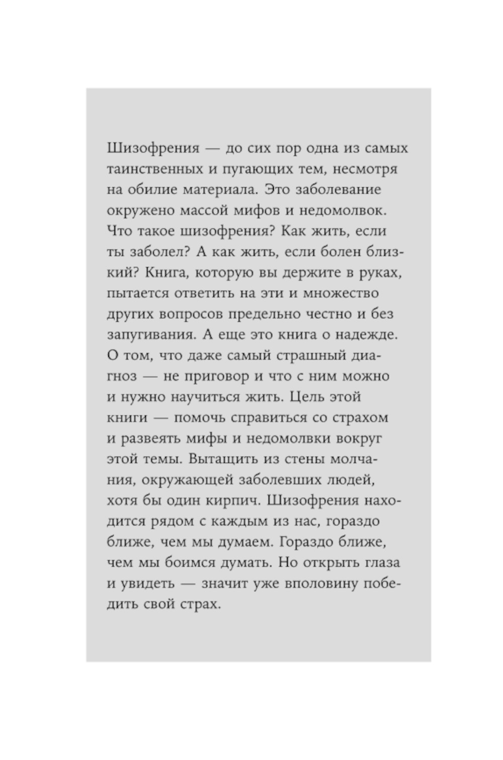 Комплект состоит из двух книг: «Шизофрения без страха» Натальи Керре и «Мы живем на Сатурне» Даши Завьяловой. Книга «Шизофрения без страха» адресована людям, страдающим шизофренией, их родным, на которых ложится ответственность за жизнь и здоровье близких, и всем, кто интересуется темой психических заболеваний. Она также будет полезна начинающим врачам-психиатрам, психотерапевтам и психологам, занимающимся лечением и реабилитацией психически больных. О книге «Мы живем на Сатурне»: Есть люди, которых называют «вечными подростками». Их жизнь - череда непредсказуемых поступков, радикальных перемен в карьере и личной жизни, зависимостей, увлечений и пристрастий. Их бросает из крайности в крайность, они не могут избавиться от «эмоциональных качелей» и склонны к саморазрушительному поведению. Если вы узнали близкого человека, не спешите с обвинениями: вполне возможно, «вечный подросток» живет с пограничным расстройством личности (ПРЛ). Врачи много лет ставили Дарье Завьяловой ложные диагнозы, а окружающие советовали ей «не придумывать» и «жить как все», стыдили, упрекали. Лишь получив поддержку психотерапевта она поняла, что происходит, научилась жить и справляться с ПРЛ. Ее книга - честный рассказ об особенностях этого расстройства, призванный облегчить жизнь других пограничных личностей и их близких. Его дополняют отсылки к научным работам, фрагменты подкастов и лекций психиатров, психотерапевтов, нейрофизиологов, а также реальных историй людей, живущих с ПРЛ.| Издательство | Альпина Паблишер |