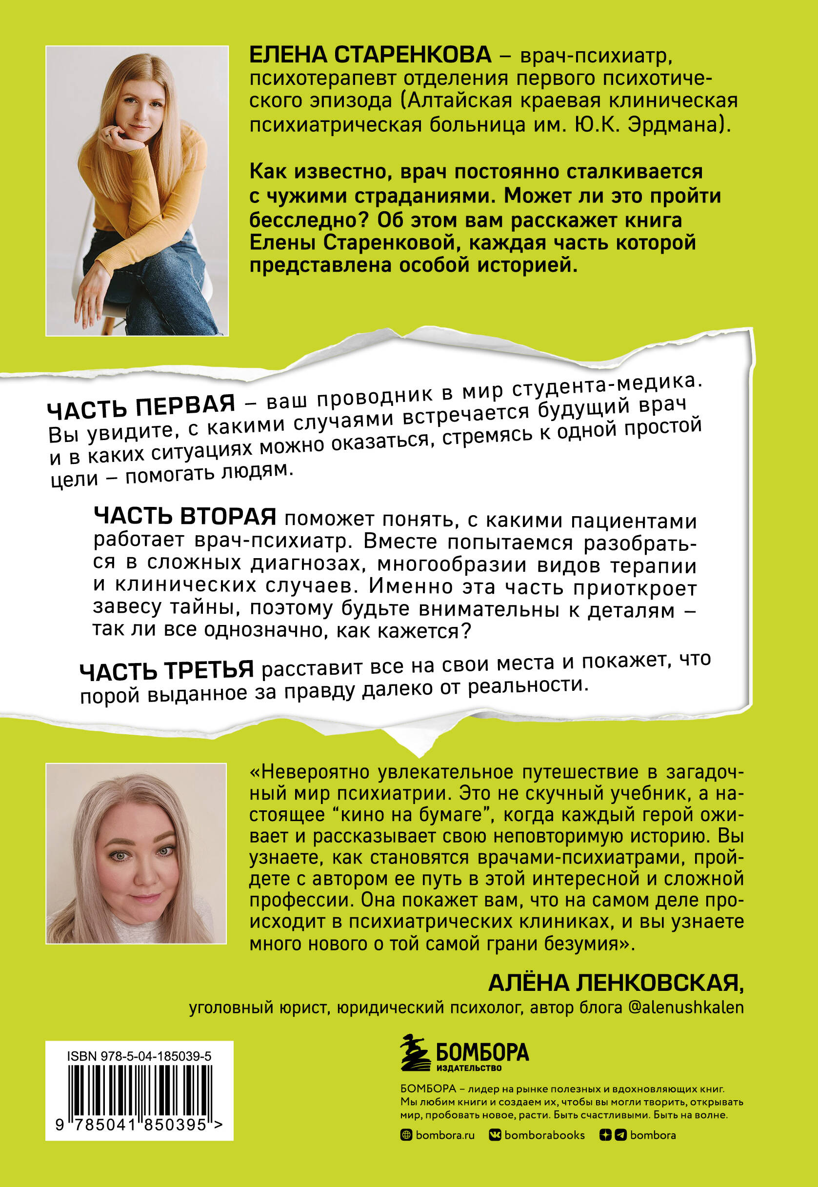 «Невероятно увлекательное путешествие в загадочный мир психиатрии. Это не скучный учебник, а настоящее "кино на бумаге", когда каждый герой оживает и рассказывает свою неповторимую историю. Вы узнаете, как становятся врачами-психиатрами, пройдете с автором ее путь в этой интересной и сложной профессии. Она покажет вам, что на самом деле происходит в психиатрических клиниках, и вы узнаете много нового о той самой грани безумия». - АЛЁНА ЛЕНКОВСКАЯ, уголовный юрист, юридический психолог, автор блога @alenushkalen| Издательство | ООО "Издательство "Эксмо" |