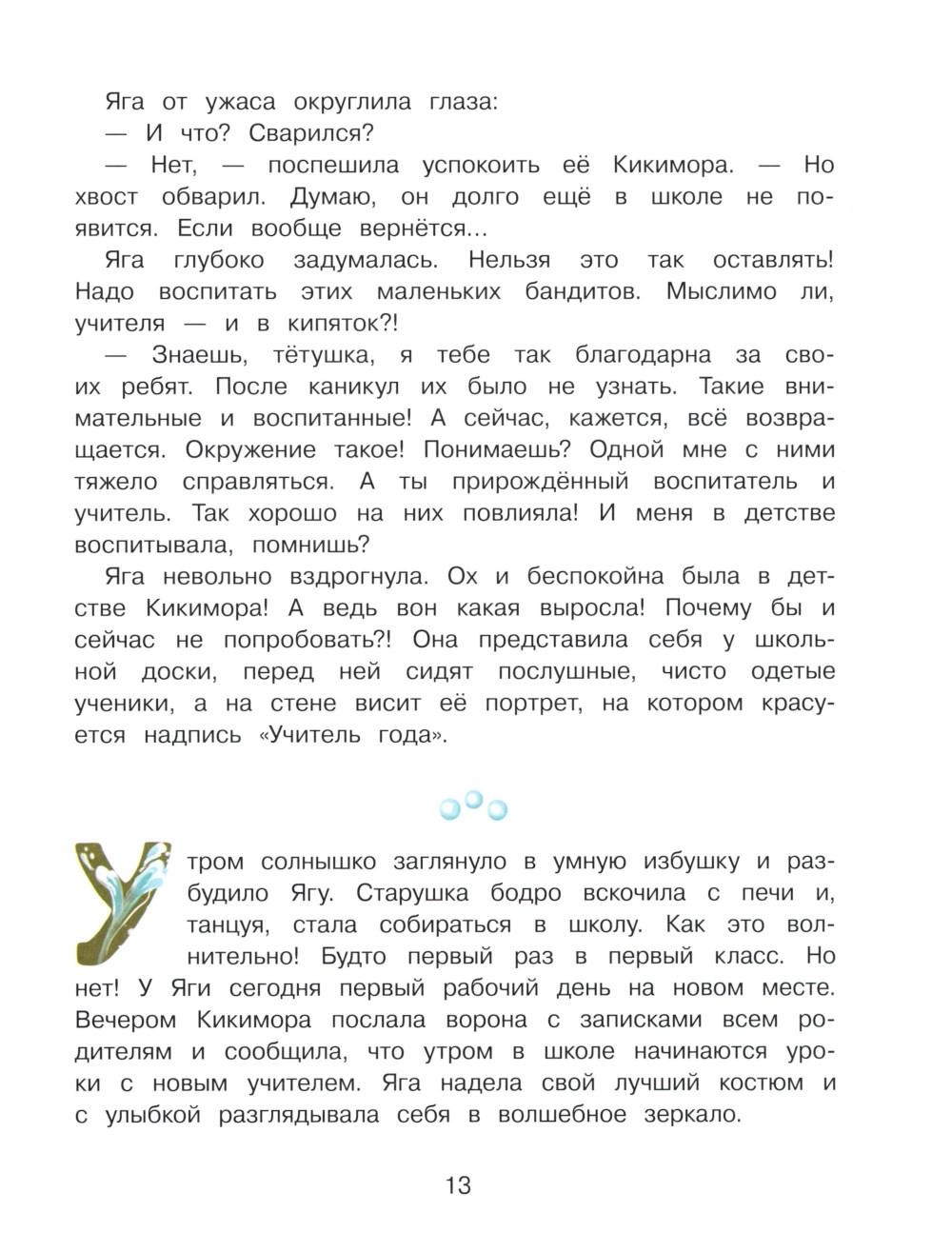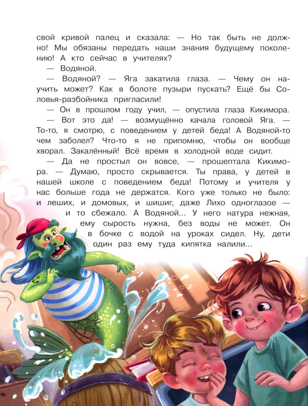 Продолжение сказочных историй «Нового года не будет!», «А Дед Мороз-то ненастоящий!», «Где же ты, Снегурочка?», «Следствие ведёт Баба Яга», «Подарок для Бабы Яги» и «Каникулы у Бабы Яги». Скучно Бабе Яге... Уехали внуки Лешего на своё болото: что ей теперь делать одной в своей умной избушке? Собралась Яга и отправилась к ним в гости. И как раз вовремя! Закрылась лесная школа, некому учить маленькую нечисть - вот они и хулиганят целыми днями, покоя никому от них нет. Последнего учителя Водяного чуть в кипятке не сварили! Баба Яга решила взять всё в свои руки. Она уже представляла себя на вручении премии «Лучший учитель школы», пока не пришла на первый урок...Читайте и узнаете! Для детей дошкольного и младшего школьного возраста.| Издательство | Стрекоза |