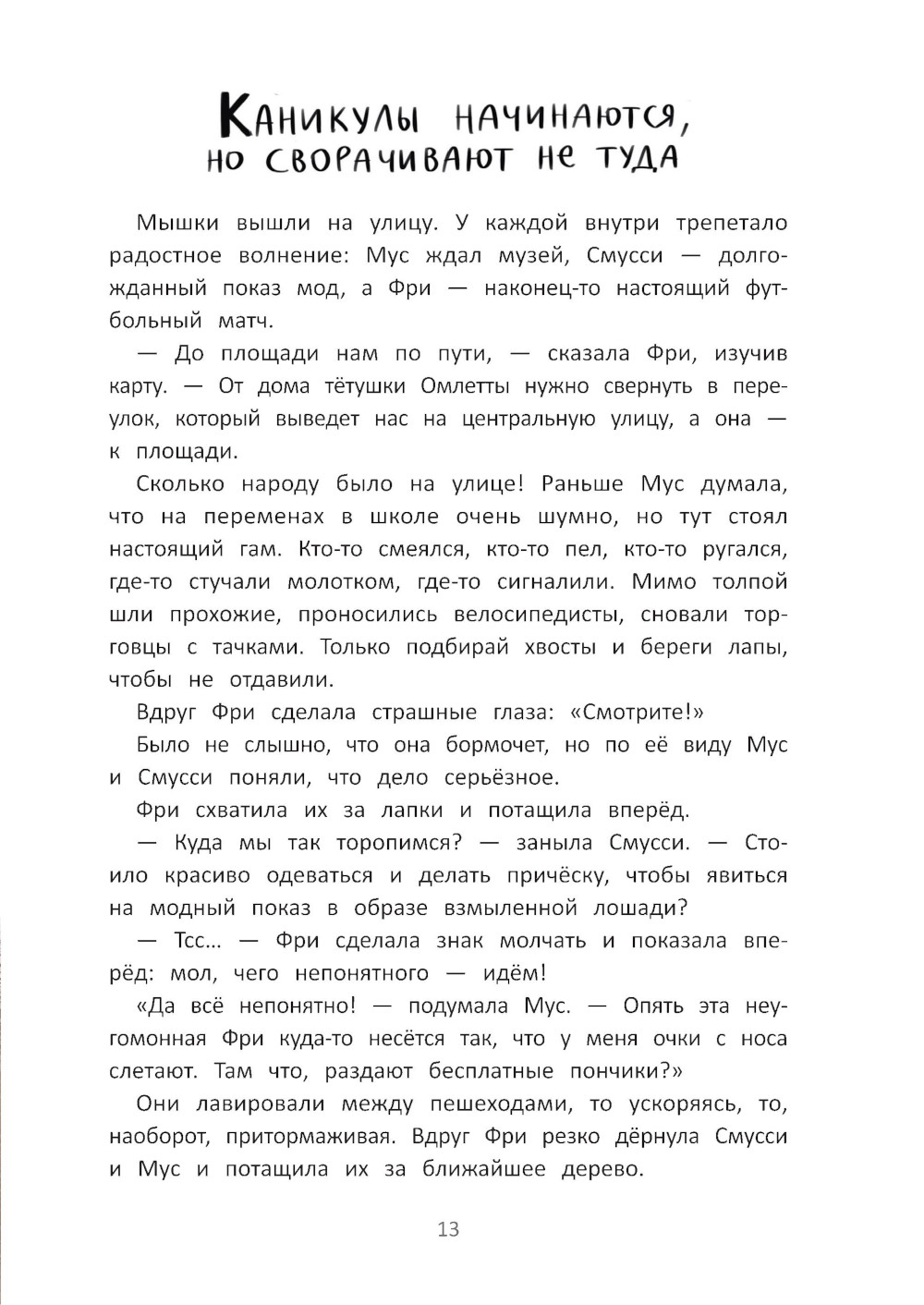 Долгожданные каникулы Мус сразу не задались: мало того, что в поездку в столицу с ней увязались несносные Смусси и Фри, так ещё и музею, в котором работает её брат, грозит опасность! Ученицам Школы благородных мышей предстоит провести ночь в музее, расшифровать старинную рукопись, очутиться в логове злодеев, раскрыть тайну лунного света и остановить преступников. Такие каникулы точно запомнятся надолго! Продолжение детективной истории про рассудительную мышку Мус, романтичную Смусси и решительную Фри известного автора и иллюстратора Ольги Фадеевой.| Издательство | Феникс |