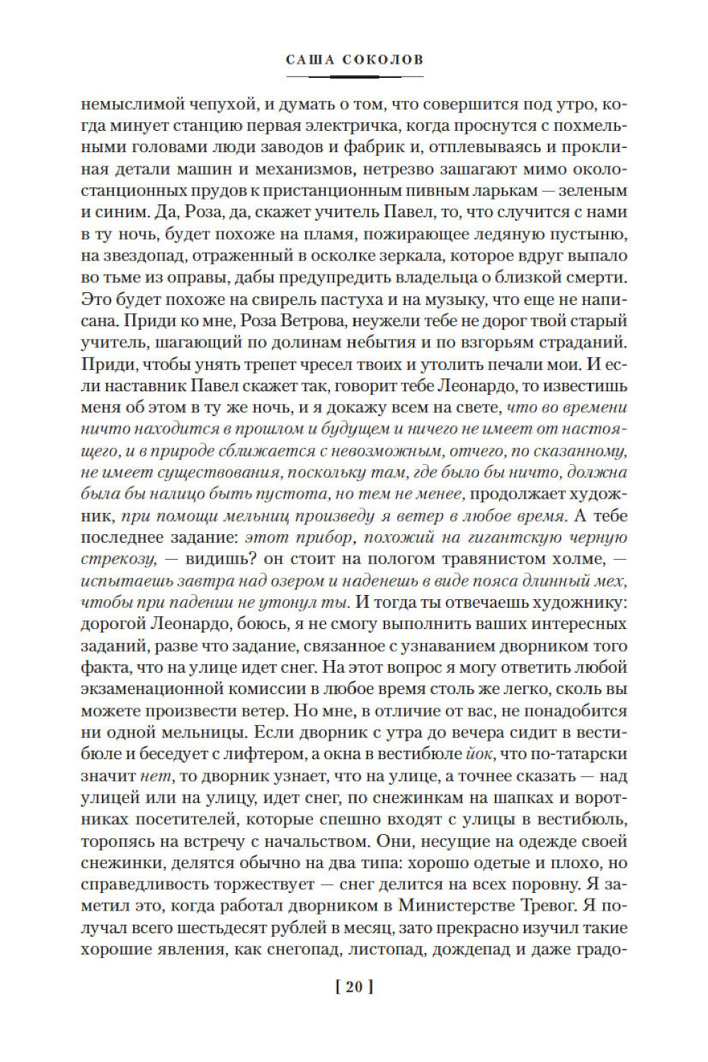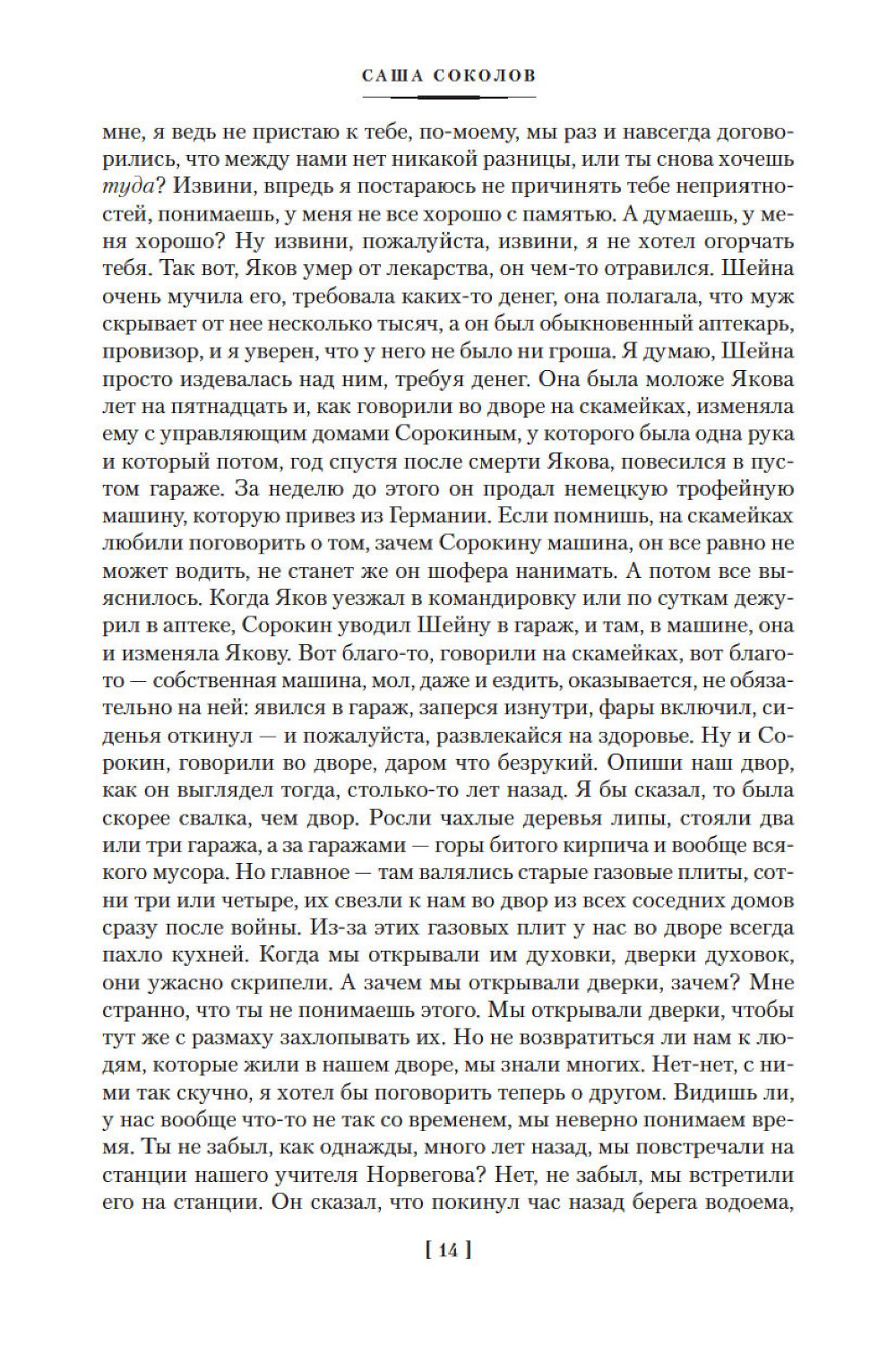 Саша Соколов - один из самых значительных русских писателей нашего времени. Его первым критиком стал Владимир Набоков, назвавший роман «Школа для дураков» «обаятельной, трагической и трогательнейшей книгой», мэтр благословил начинающего автора. Сегодня о Соколове говорят как о легенде русской литературы, живом классике, культовом писателе-постмодернисте. Сам же себя он считает проэтом (прозаик + поэт). Романы «Школа для дураков», «Между собакой и волком», «Палисандрия» кардинальным образом повлияли на развитие новой русской прозы, открыв ранее не изведанные возможности искусства слова. Блестящий стилист и тонкий психолог, Саша Соколов смело переосмысливает лучшие традиции классики, возвращая русской литературе современное и всемирное звучание. В настоящем издании творчество Саши Соколова представлено с максимальной полнотой: в него вошли все три романа, а также эссе и поэмы.| Издательство | Азбука |