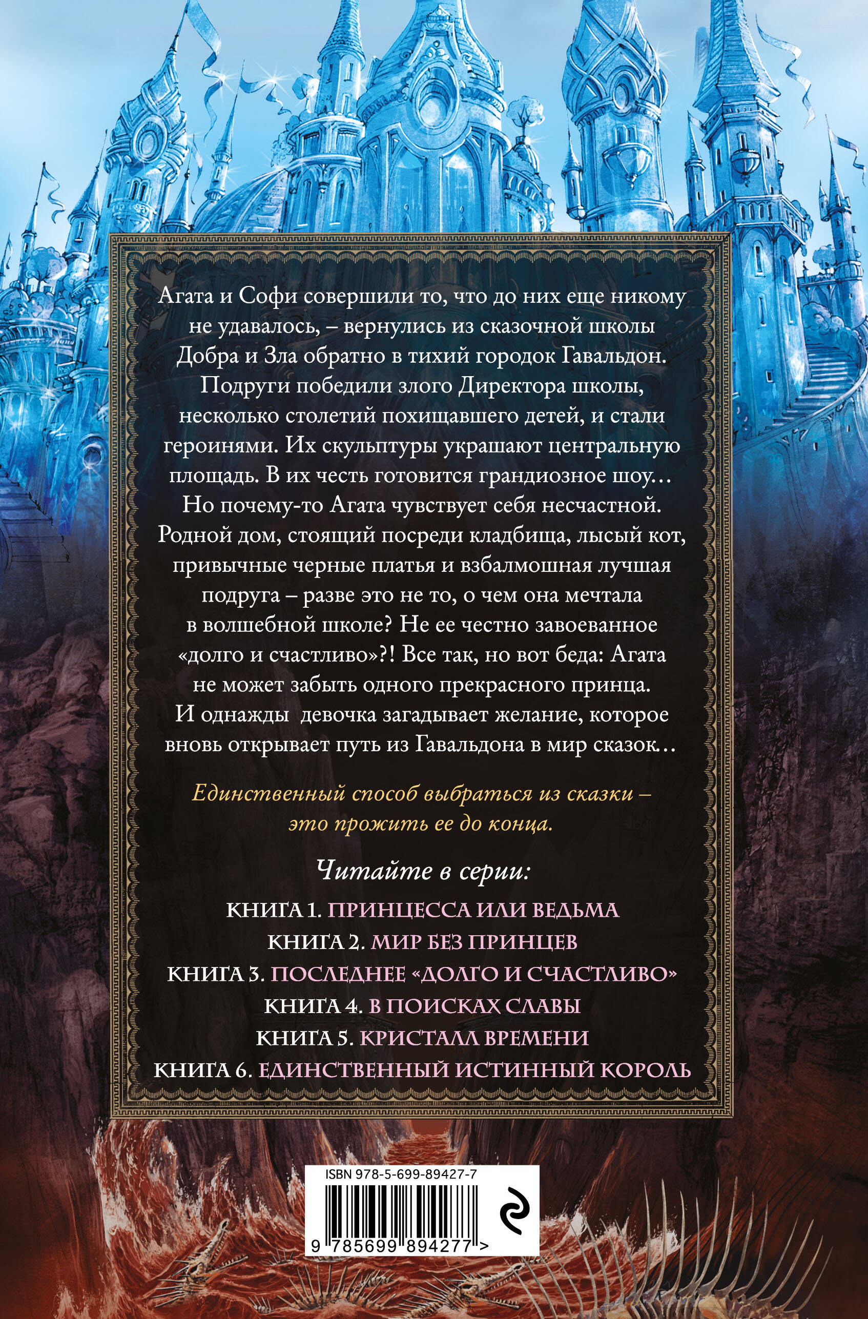 Агата и Софи совершили то, что до них ещё никому не удавалось - вернулись из сказочной школы Добра и Зла обратно в тихий городок Гавальдон. Подруги победили злого Директора школы, несколько столетий похищавшего детей, и стали героинями. Их скульптуры украшают центральную площадь. В их честь готовится грандиозное шоу… Но почему-то Агата чувствует себя несчастной. Родной дом, стоящий посреди кладбища, лысый кот, привычные чёрные платья и взбалмошная лучшая подруга - разве это не то, о чём она мечтала в волшебной школе? Не её честно завоеванное «долго и счастливо»?! Всё так, но вот беда: Агата не может забыть одного прекрасного принца. И однажды девочка загадывает желание, которое вновь открывает путь из Гавальдона в мир сказок… Поразительная смесь приключений и пересказа на новый лад всем известных сказок. Совершенно непредсказуемый финал «Мира без принцев» подтверждает правдивость одного из лозунгов Школы Добра и Зла: «Добро с Добром, Зло со Злом». Оторваться невозможно!| Издательство | ООО "Издательство "Эксмо" |