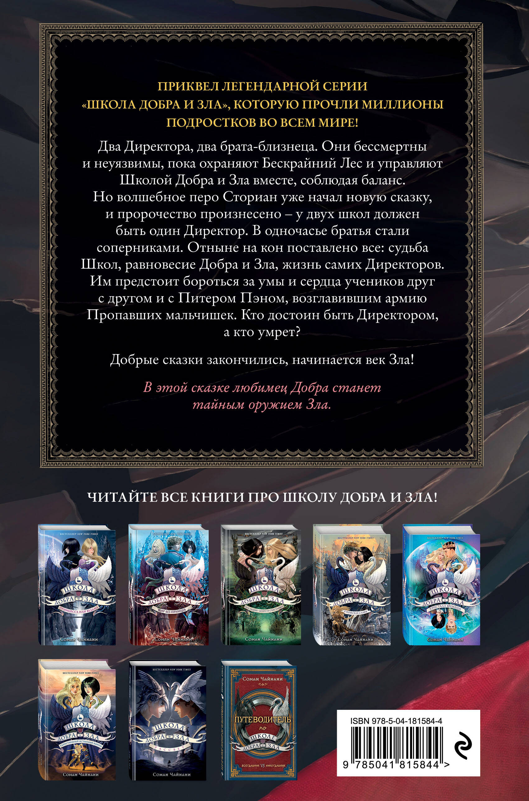 С возвращением в Школу Добра и Зла! Читатели по всему миру полюбили серию романов Сомана Чайнани. Книги издаются в 30 странах, а совокупный тираж больше 4 млн экземпляров. Netflix снял одноименный фильм, в котором сыграли именитые актеры. Вторая часть предыстории легендарного фэнтези-цикла бестселлеров о Школе Добра и Зла! Путешествие, начавшееся сто лет назад, приближается к концу… В этой книге рассказывается о том, как два брата-близнеца вступают в борьбу за должность Директора Школы. Им предстоит бороться за умы и сердца учеников друг с другом и с Питером Пэном, возглавившим армию Пропавших мальчишек. Добрые сказки закончились, начинается век Зла! Приквелы «Рассвет» и «Падение» можно читать отдельно от основного цикла, как самостоятельную историю. Отличная книга для подростка от 10 лет. Роман для всех, кто любит сказочные истории, звучащие по-новому. Готовьтесь к встрече с Аладдином, Мидасом и Капитаном Крюком!| Издательство | ООО "Издательство "Эксмо" |