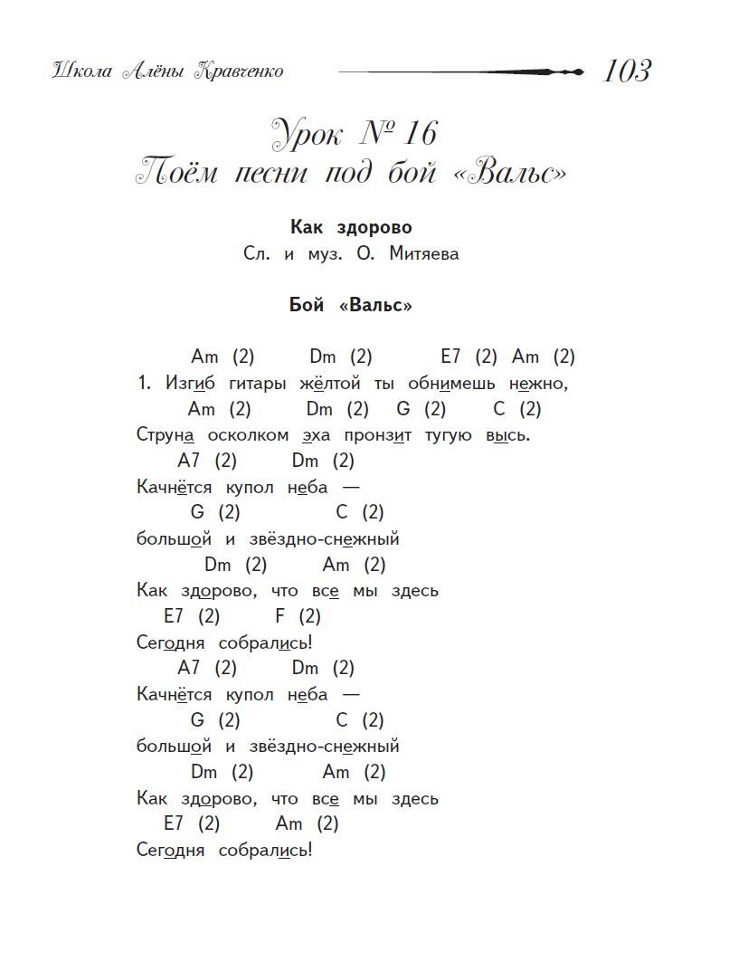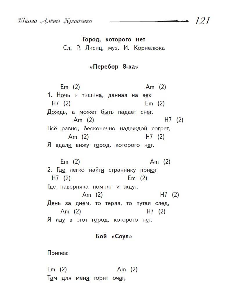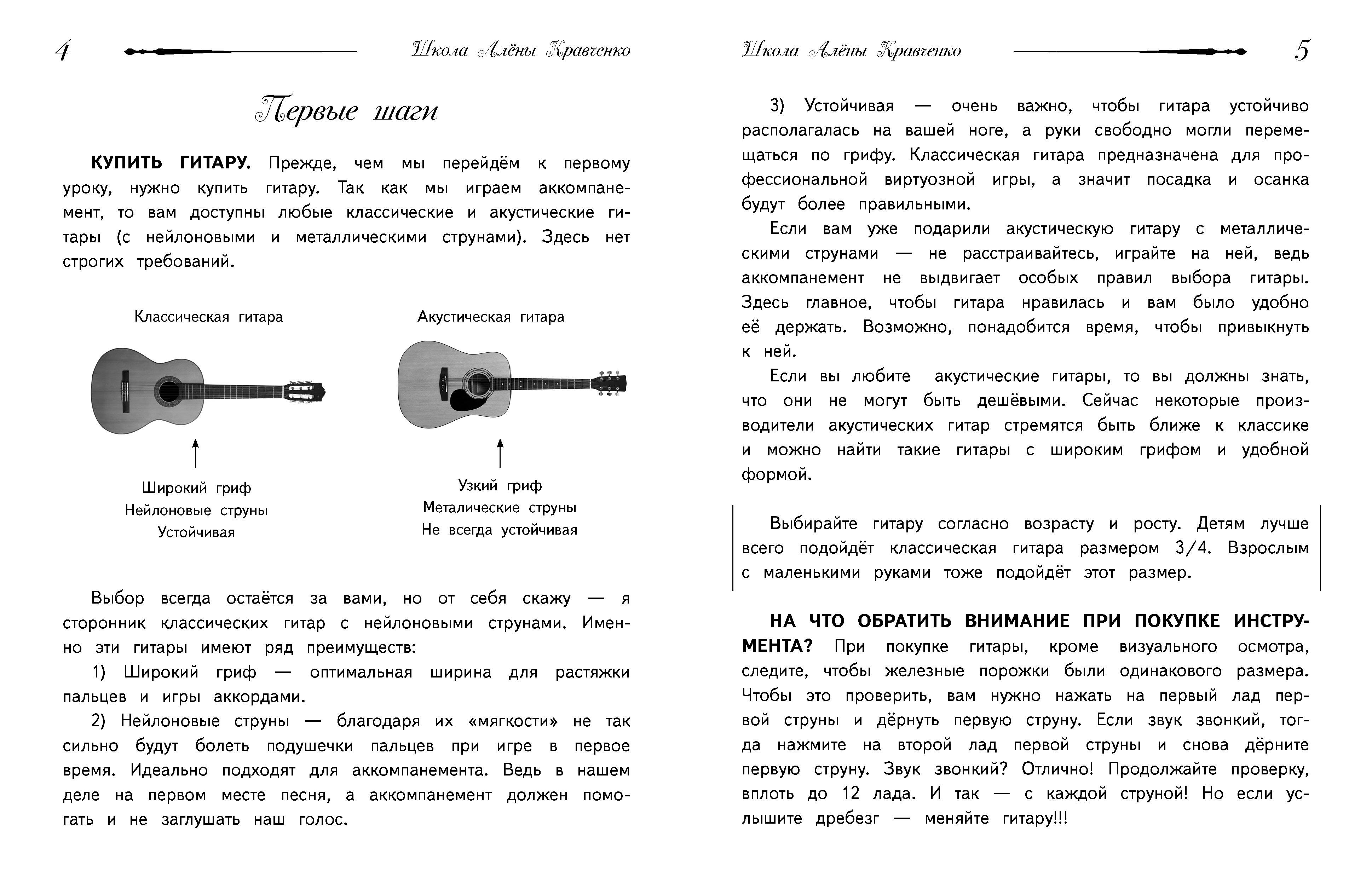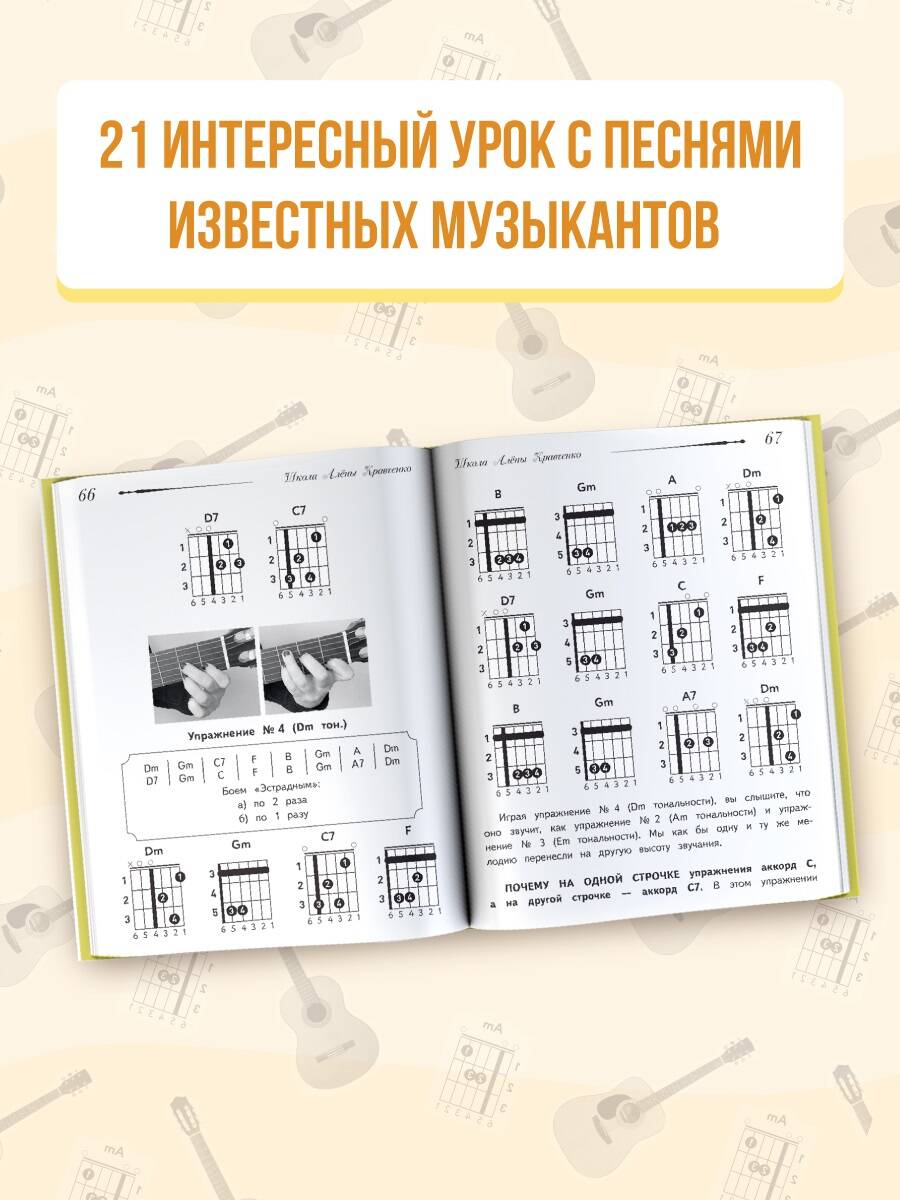 Этот самоучитель даёт возможность научиться играть и петь свои первые песни уже на втором уроке! Он подходит для всех, даже для тех, кто считает, что не обладает музыкальным слухом или голосом. Вместо выполнения скучных упражнений ребёнок сразу попадёт в мир песен и игры на гитаре. В этой книге: Безнотный метод обучения игры на гитаре. Учимся по картинкам! 21 интересный урок с песнями Ю.Визбора, О.Митяева, И. Корнелюка, И. Саруханова и других. Материал выстроен по принципу постепенного усложнения. Автор - Алёна Кравченко - преподаватель со стажем более тридцати лет, создатель авторской методики, благодаря которой сотни учеников по всей стране уже овладели мастерством игры на гитаре.| Издательство | ИЗДАТЕЛЬСТВО "АСТ" |