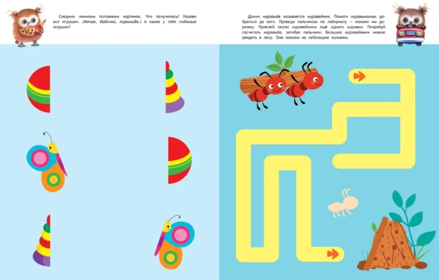 Издательство «Стрекоза» предлагает для родителей и педагогов комплект развивающих книг для детей 2+ серии «Школа маленьких совят». Комплект состоит из 4 пособий: «Графические навыкие», «Первая математика», «Развиваем мышление», «Развиваем речь». Задания расположены в порядке возрастания сложности. Рекомендуем выполнять их в той последовательности, в которой они расположены в пособиях. С нашими книгами малыши будут развивать графические навыки, без овладения которыми потом не будет возможен выход к письму. Научатся различать предметы по цвету, форме и величине, показывать в сравнении предметы контрастных размеров: большой и маленький, высокий и низкий, длинный и короткий. Пришло время учить малышей считать. Сначала вводим понятия «много» и «мало». Затем переходим непосредственно к счёту. Малыши третьего года жизни способны выполнять несложные упражнения на установление сходства и различия между предметами по одному из признаков (цвет, форма, величина). Они должны уметь отличать основные цвета и геометрические фигуры, оперировать понятиями «большой» и «маленький», «много» и «мало». В этом возрасте дети продолжают пополнять свой словарный запас, осваивая названия окружающих предметов, и продолжают совершенствовать грамматическую структуру речи. Они используют в своей речи уже почти все части речи. Параллельно идёт развитие артикуляционного и голосового аппарата, речевого дыхания, слухового внимания. Эти возрастные особенности были учтены при составлении пособия. В каждом пособии в середине книги находится лист с наклейками, необходимыми для выполнения заданий.
