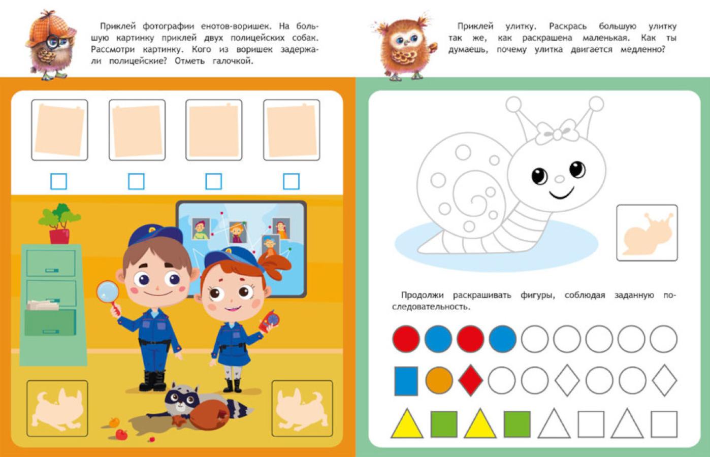Комплект состоит из четырех книг для школы маленьких совят! Эти книги предназначены для развития мышления у ребёнка от четырёх лет. В этом возрасте малыш должен уметь сравнивать предметы по величине, цвету и форме, находить отличия между картинками, называть группу предметов общим понятием (цветы, звери, птицы, насекомые, посуда, инструменты и т. д.), устанавливать логические связи и объединять предметы в логические пары, выполнять задания по схеме, проходить лабиринты, раскрашивать по образцу. Упражнения на развитие этих умений собраны в данном пособии. Наклейки помогут внести в процесс обучения игровой момент. Лист с наклейками находится в середине книг.