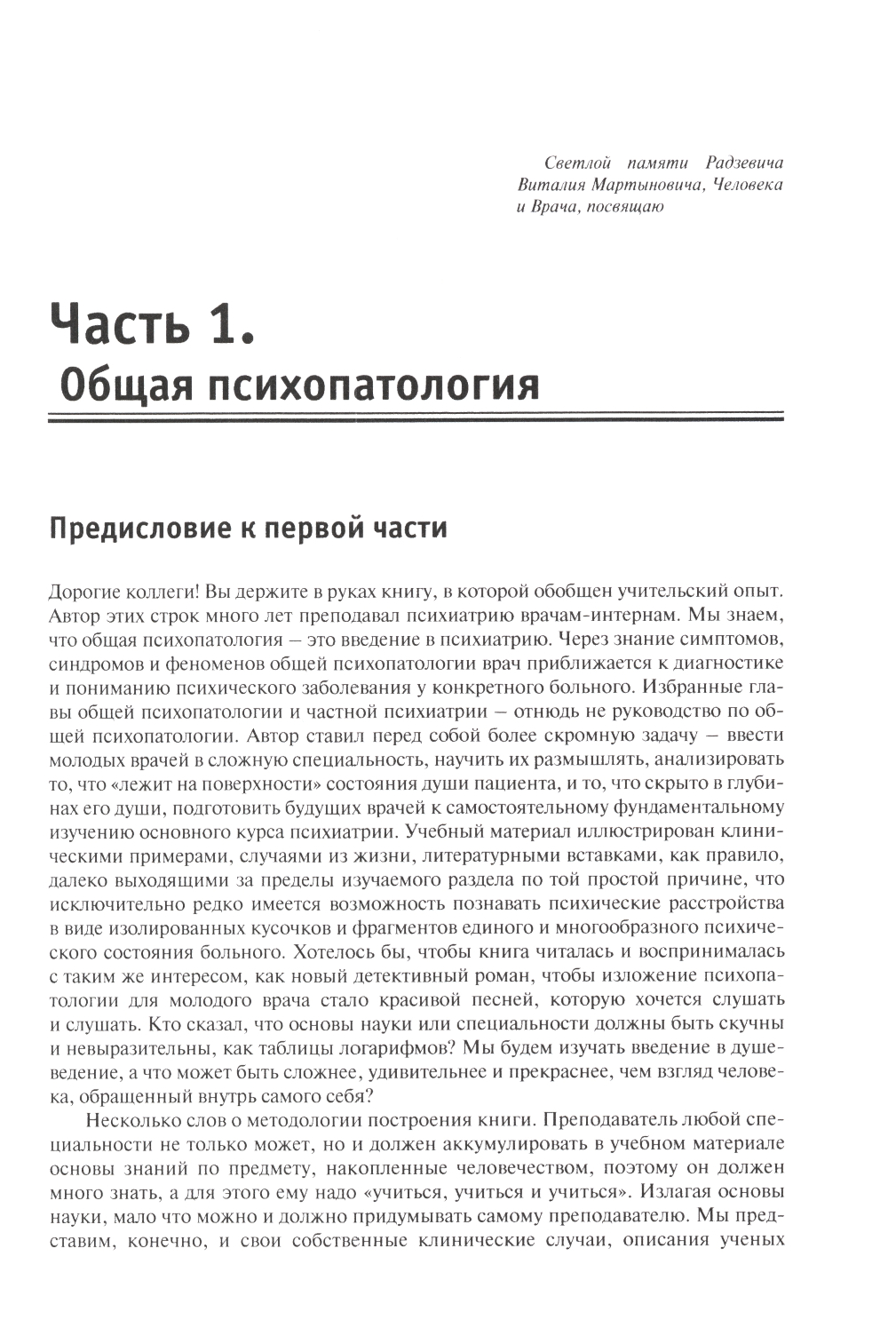 В книге изложен опыт преподавания общей психопатологии и частной психиатрии молодым врачам при прохождении ими интернатуры на базе типового городского психоневрологического диспансера. Учебный материал иллюстрирован большим количеством клинических примеров, а также случаев из судебно-психиатрической экспертной практики. В основу материала положен клинико-феноменологический метод познания психопатологических расстройств. Широко представлены клинические воззрения классиков психиатрии. В клинических примерах используется преимущественно отечественная клинико-нозологическая классификация психических заболеваний. Книга может служить дополнительным пособием для изучения психиатрии и профессиональной подготовки врача-психиатра.