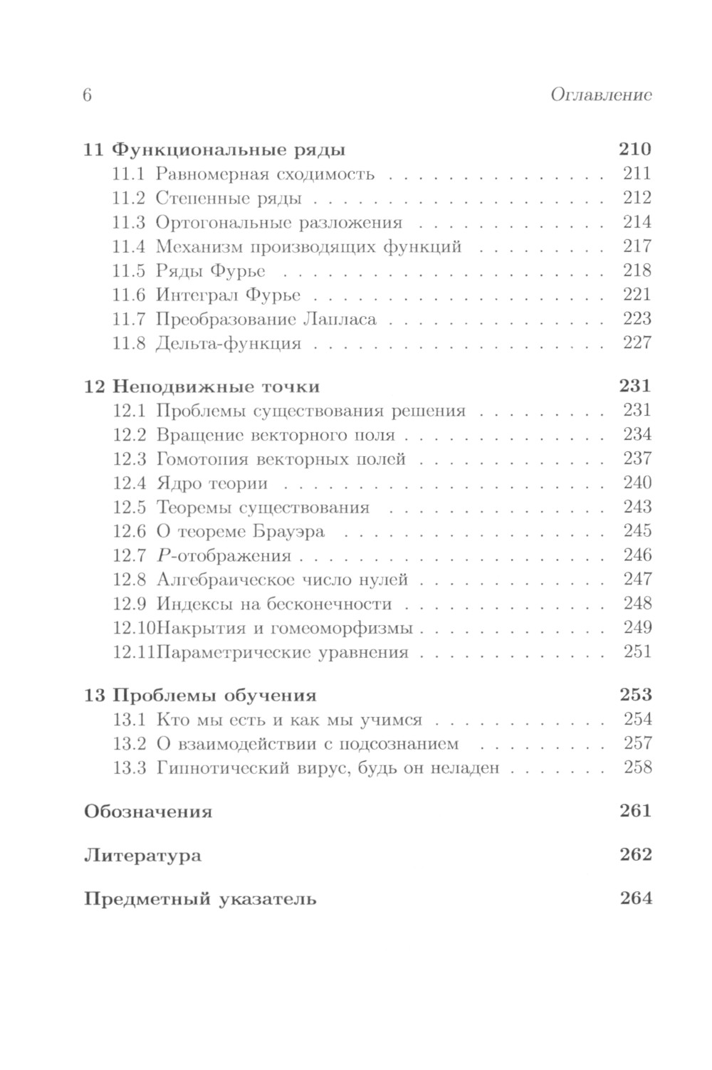 Стандартная программа математического анализа (производные, интегралы) расширена добавлением ингредиентов из других дисциплин, чем достигается цельность предмета. Яснее становится «что для чего нужно». При этом изложение отличается краткостью и прозрачностью, вплоть до объяснений на пальцах. Акцент делается на понимании существа дела, причем с заботой о новичках, знакомящихся с предметом либо впервые, либо - по второму кругу, после не вполне удачного первого. Охват материала достаточно широкий, но изложение построено так, что можно ограничиться любым желаемым срезом содержания. Значительное внимание уделяется мотивации результатов. Объяснения даются «человеческим языком». Книга легко читается, самодостаточна и может служить основой при изучении матанализа. Для студентов, преподавателей, инженеров и научных работников.| Издательство | ЛЕНАНД |
