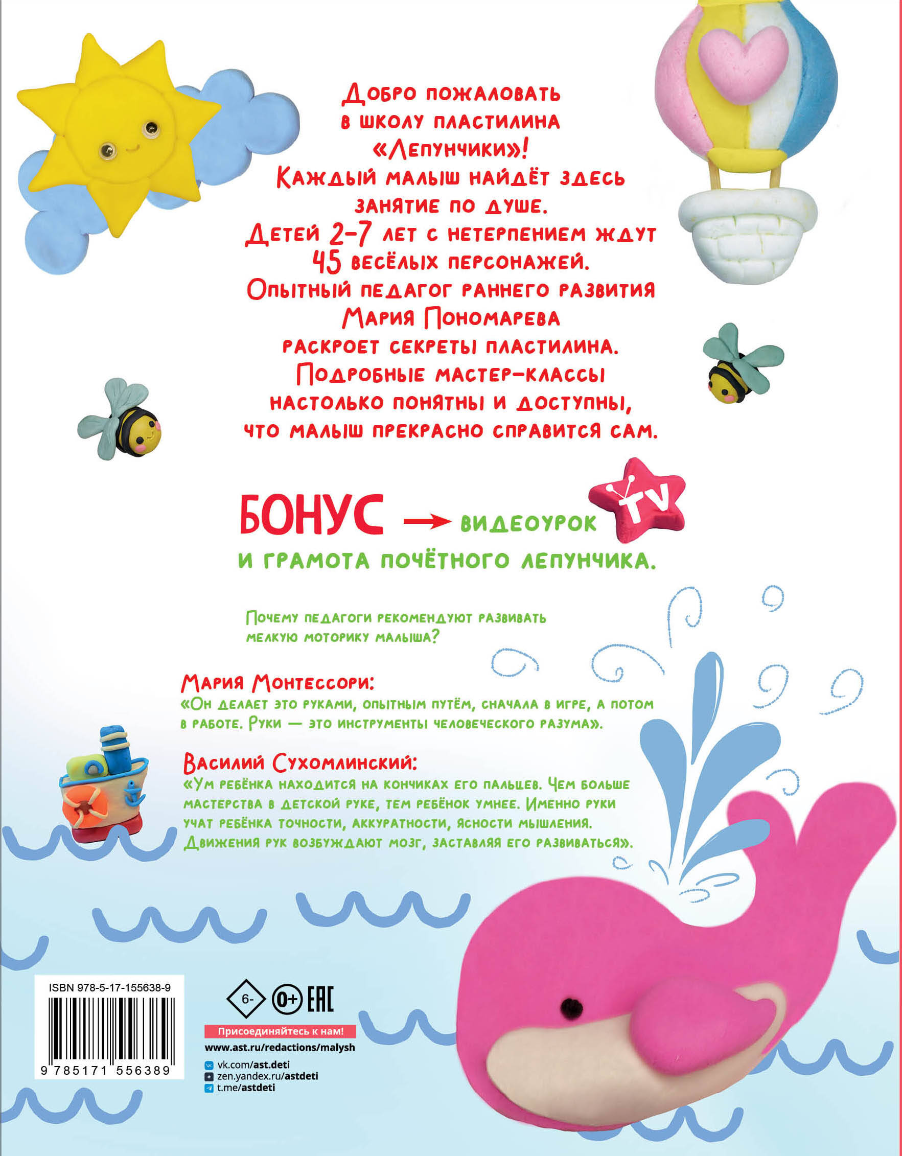 Почему все детские центры и курсы подготовки к школе обязательно включают в свои программы пластилин? Занятия лепкой не только увлекательны, но и очень полезны. Это универсальный и максимально эффективный тренажер для развития мелкой моторики рук, глазомера, мышления, памяти, фантазии, мозга в целом! Без особых усилий концентрируется внимание, ребенок становится более усидчивым, причем без применения вредных гаджетов, выплескиваются негативные эмоции. В этой книге опытный педагог и директор онлайн-школы пластилина «Лепунчики» Мария Пономарева раскроет секреты обучения навыку лепки детей от 2 до 5-6 лет. Начиная с простых и эффектных поделок, ребенок шаг за шагом освоит все приемы, получит эстетическое удовольствие и переживет ситуацию успеха. Подробные фото мастер-классов настолько понятны и доступны, что малыш прекрасно справится сам. В финале маленького самоделкина ждет сюрприз - диплом Школы пластилина и видеовстреча с волшебной учительницей. Занимайтесь с пользой и удовольствием!| Издательство | Издательство "АСТ" |