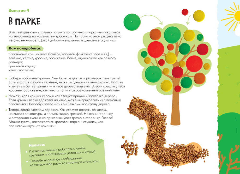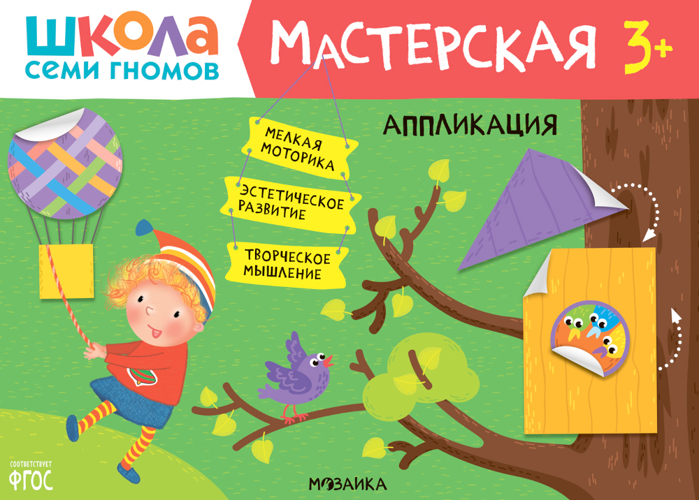«Школа Семи Гномов. Мастерская 3+» - это набор красочных альбомов для увлекательных занятий творчеством с детьми от 3 до 4 лет. Занятия на близкие и понятные ребенку темы расположены по мере усложнения: поступательно переходя от освоения простых навыков к более сложным заданиям. Результатом каждого занятия станет законченное произведение, которое ребенок создал сам. В конце альбома маленького художника ждет большое итоговое задание, где он сможет применить все свои новые умения. В набор входят 5 альбомов, с которыми ребенок научится создавать: • аппликации с помощью бумаги и клея (альбом «Аппликация»); • творческие работы из подручных материалов с помощью клея и пластилина (альбом «Декоративное творчество»); • творческие работы на бумаге с помощью пластилина (альбом «Лепка»); • рисунки с помощью карандашей или фломастеров (альбом «Рисуем карандашами»); • рисунки с помощью красок и кисточки (альбом «Рисуем красками»).
