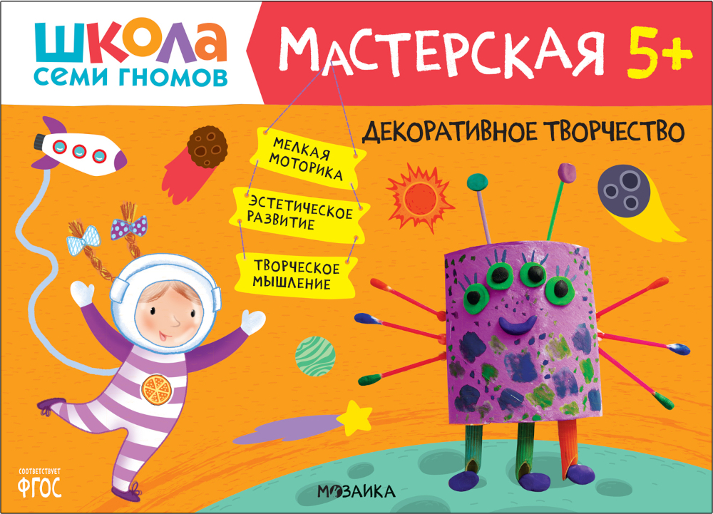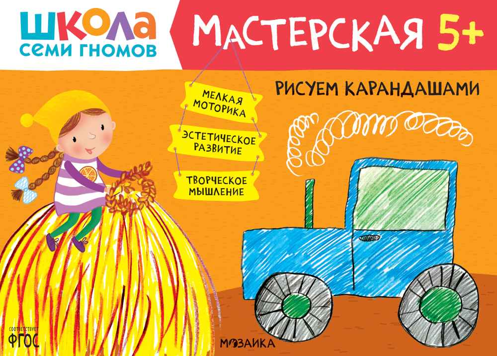 «Школа Семи Гномов. Мастерская 5+» - это набор красочных альбомов для увлекательных занятий творчеством с детьми от 5 до 6 лет. Занятия на близкие и понятные ребенку темы расположены по мере усложнения: поступательно переходя от освоения простых навыков к более сложным заданиям. Результатом каждого занятия станет законченное произведение, которое ребенок создал сам. В конце альбома маленького художника ждет большое итоговое задание, где он сможет применить все свои новые умения. В набор входят 5 альбомов, с которыми ребенок научится создавать: • аппликации с помощью бумаги и клея (альбом «Аппликация»); • творческие работы из подручных материалов с помощью клея и пластилина (альбом «Декоративное творчество»); • творческие работы на бумаге с помощью пластилина (альбом «Лепка»); • рисунки с помощью карандашей или фломастеров (альбом «Рисуем карандашами»); • рисунки с помощью красок и кисточки (альбом «Рисуем красками»).| Издательство | Мозаика-Синтез |