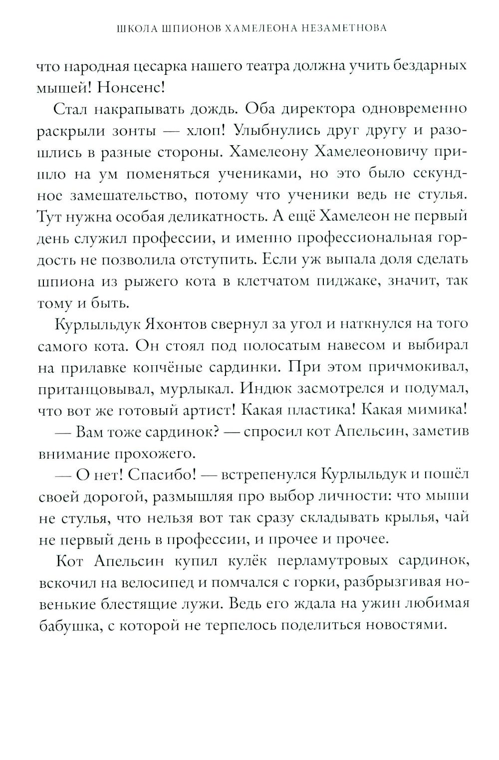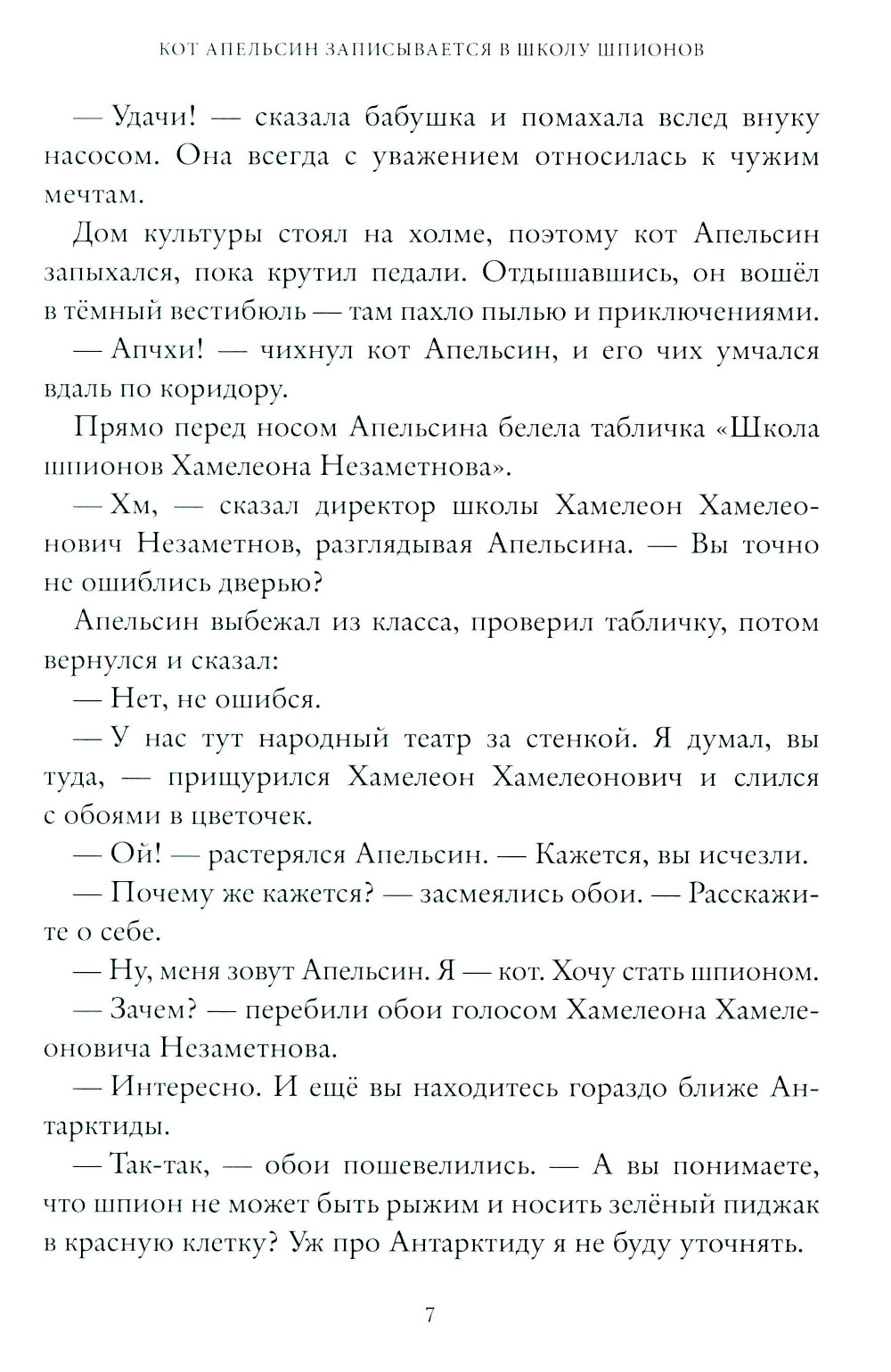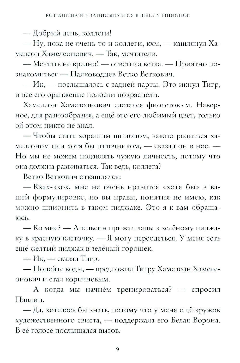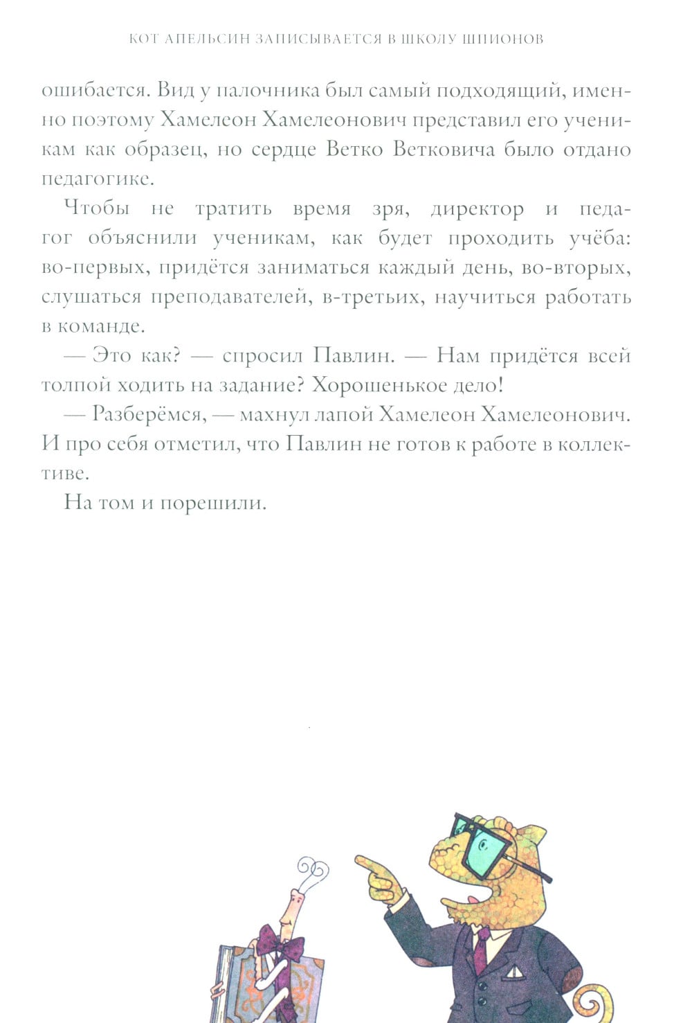 Когда в твоём городе открывает набор учеников школа шпионов, разве можно заниматься чем-то другим? Так подумали одновременно кот Апельсин, Утка-Мандаринка, Белая Ворона, Павлин, Жираф и Тигр. Их педагогу Хамелеону Хамелеоновичу Незаметнову предстоит сделать из этих ярких личностей умельцев прятаться у всех на виду, вести себя тихо, уметь слушать и слышать. Как назло, в учебный процесс вмешивается таинственное дело, которое срочно нужно расследовать: кто-то хочет сорвать карнавал! Главный праздник в городе! Вот и работа для новобранцев школы шпионов! Весёлая приключенческая книга детской писательницы Юлии Симбирской - о том, что талант прорастёт на любой почве, и о том, что даже в самом серьёзном деле иногда нужно от души посмеяться! Иллюстрации Марии Некрут.| Издательство | Абрикобукс |