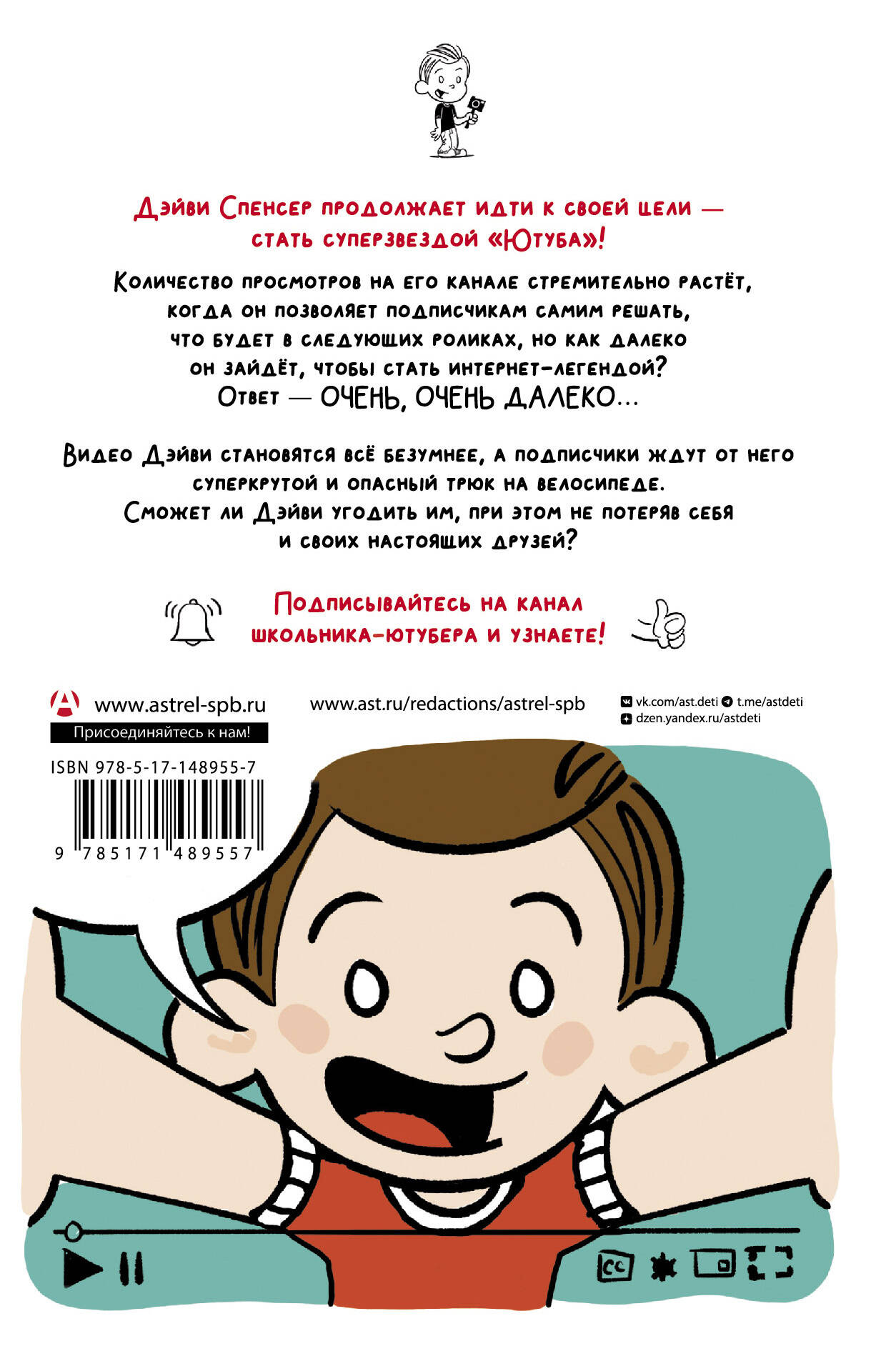 Шестиклассник Дэйви Спенсер продолжает покорять «Ютуб». На этот раз он предлагает своим подписчикам самим придумать, что будет в его новых роликах. Количество просмотров и фанатов растёт, но задания становятся всё безумнее и безумнее. Сможет ли Дэйви выполнить их все? И как далеко он готов зайти, чтобы стать суперзвездой «Ютуба»?| Издательство | ИЗДАТЕЛЬСТВО "АСТ" |