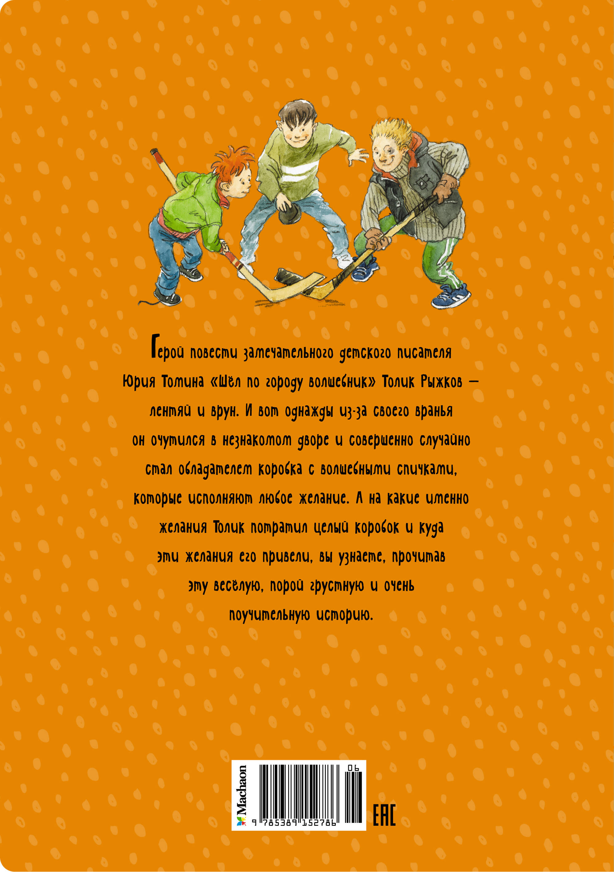 Герой повести замечательного детского писателя Юрия Томина "Шёл по городу волшебник" Толик Рыжков - лентяй и врун. И вот однажды из-за своего вранья он очутился в незнакомом дворе и совершенно случайно стал обладателем коробка с волшебными спичками, которые исполняют любое желание. А на какие именно желания Толик потратил целый коробок и куда эти желания его привели, вы узнаете, прочитав эту весёлую, порой грустную и очень поучительную историю. Повесть впервые вышла в 1963 году и с тех пор постоянно переиздаётся, по ней снят фильм "Тайна железной двери".| Издательство | Азбука-Аттикус Издат.группа ООО |
