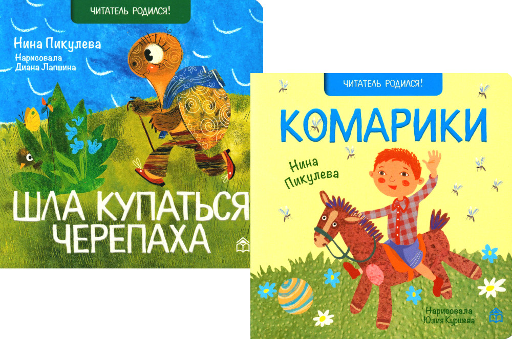 Комплект «Шла купаться черепаха; Комарики (комплект из 2 книг)» содержит книги: «Шла купаться черпаха» Книжка «Шла купаться черепаха» Нины Пикулевой как нельзя лучше вписывается в серию «Читатель родился!». Это помощник мамам, папам, бабушкам с дедушками, няням и воспитателям детских садов. Каждое стихотворение может стать основой для полезного и увлекательного занятия с малышом. И самое необычное! В книжке не только сами стихи-потешки, но и подсказки взрослому, как вовлечь ребенка в чтение и игру. Например, читая стихотворение «Барабан», можно робко постучать «Бам!» и громко «Бум!» и тихонько, как дождик - «Тук-тук!». А ещё здесь можно найти альтернативу (и не одну!) всем известной «По ровненькой дорожке». В книжке крупные и яркие иллюстрации Дианы Лапшиной. «Комарики» Удивительно добрые и напевные потешки и пестушки Нины Пикулевой просто созданы для нежного воркования мамы с малышом. С ними вместе можно ласкать и смешить ребенка, а если тот расплачется - утешить и убаюкать. В книге есть всё для того, чтобы совершить первое головокружительное знакомство с окружающим миром и не испугаться, а разузнать: кто большой, а кто маленький, зачем чашка, ложка и какой секрет есть у кастрюли-хитрюли. А если родителям немного поднадоели привычные малышовые игры-потешки, но хочется растормошить малыша, в «Комариках», есть весёлые «дарики-Комарики», которые не дадут заскучать. Каждое стихотворение Нины благотворно влияет на психику малыша - сообщая о том, как он важен, нужен и любим. Все это поможет вырасти малышу уверенным и добрым.| Издательство | КД Анастасии Орловой |
