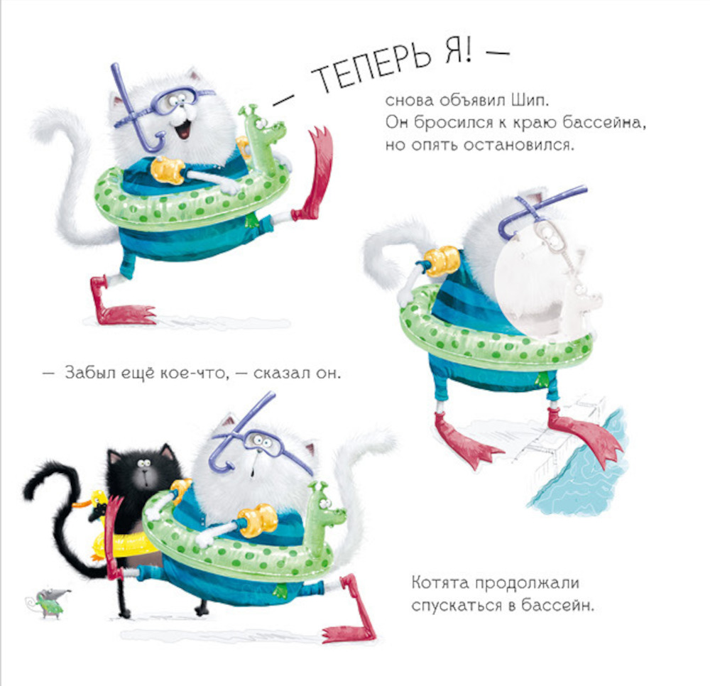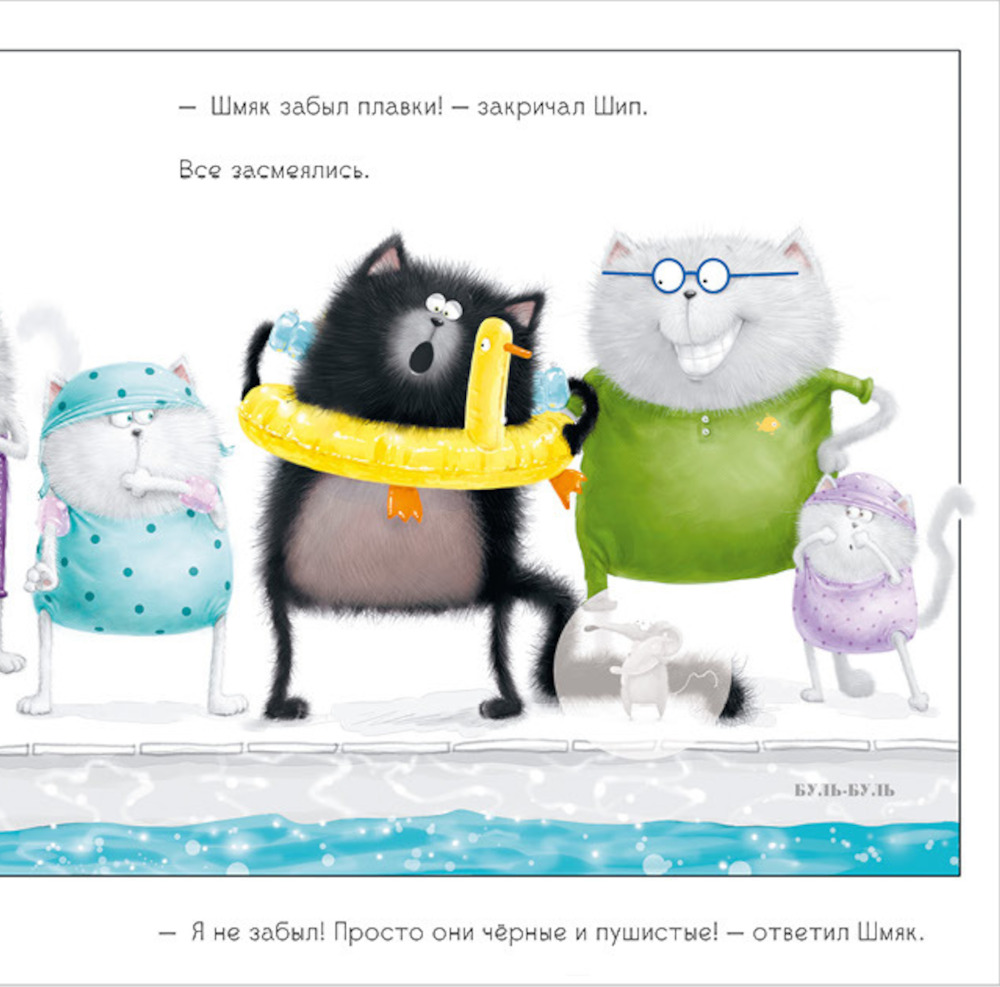 Это история о бесстрашном герое... то есть сначала он не был бесстрашным. Шмяк боялся плавать и не любил воду. Вода казалась ему мокрой, а намокать он совсем не любил, даже когда мама купала его в ванне. И вот весь класс Шмяка отправляется в бассейн. Здесь и Пряник, и Китти... Что делать Шмяку? Ведь в бассейне вода тоже ужасно мокрая, да еще и плавки Шмяк, кажется, забыл. Читая, вы посмеетесь от души, а еще поиграете с наклейками.| Издательство | Клевер-Медиа-Групп |
