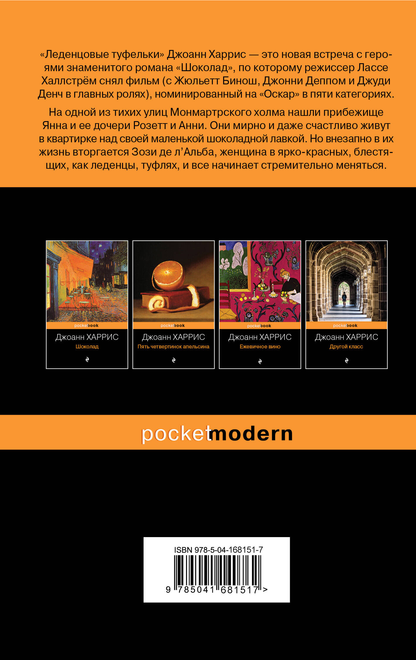 Джоанн Харрис - одна из популярных британских писательниц. Роман «Шоколад» вошел в шорт-лист престижной Уитбредовской премии, а позже был экранизирован. Фильм с Жюльет Бинош и Джонни Деппом номинировался на «Оскар» в пяти категориях. В комплекте представлен роман «Шоколад» и его продолжение - «Леденцовые туфельки».| Издательство | Эксмо |