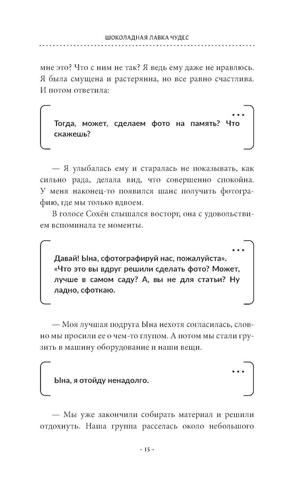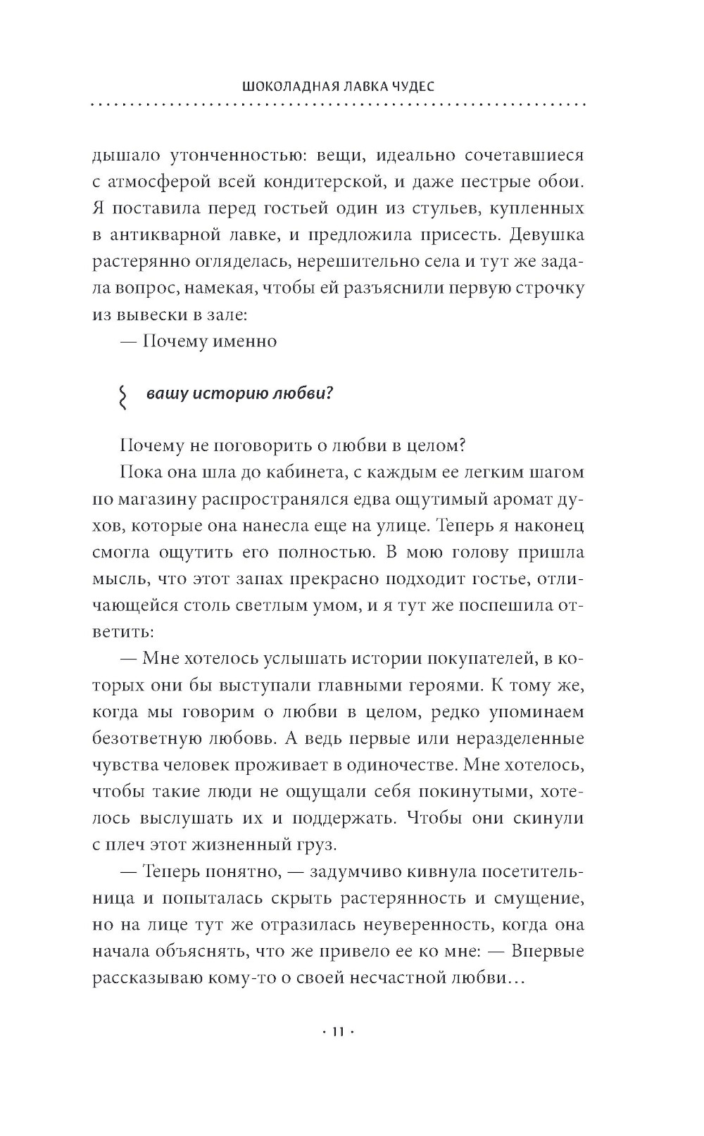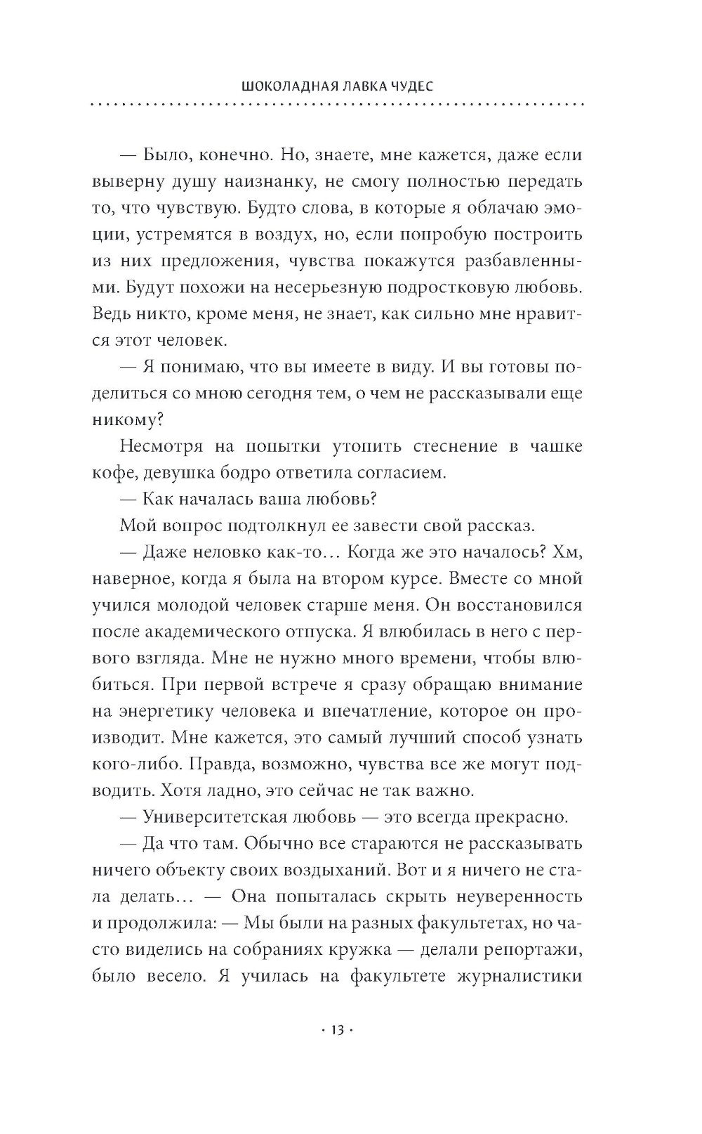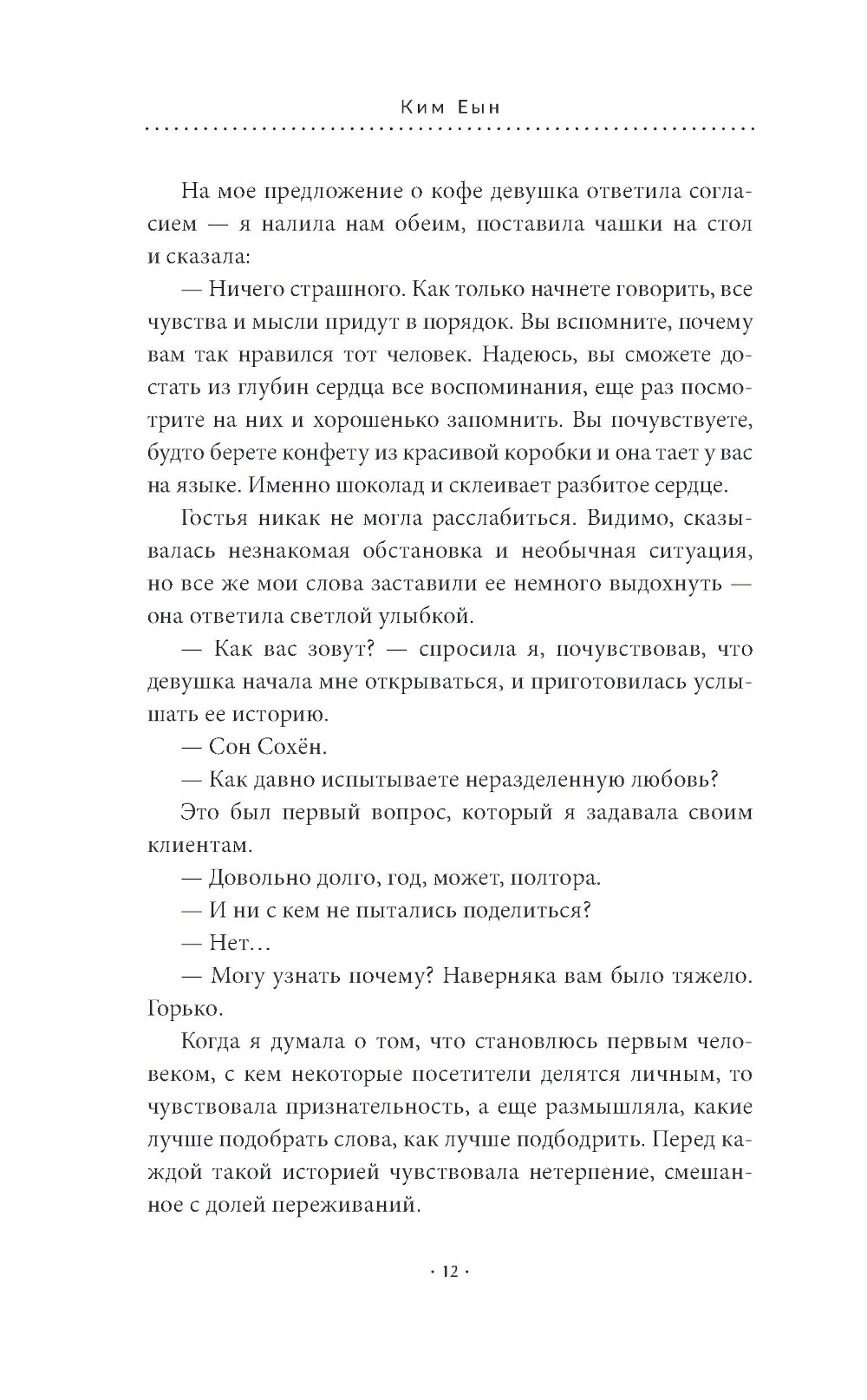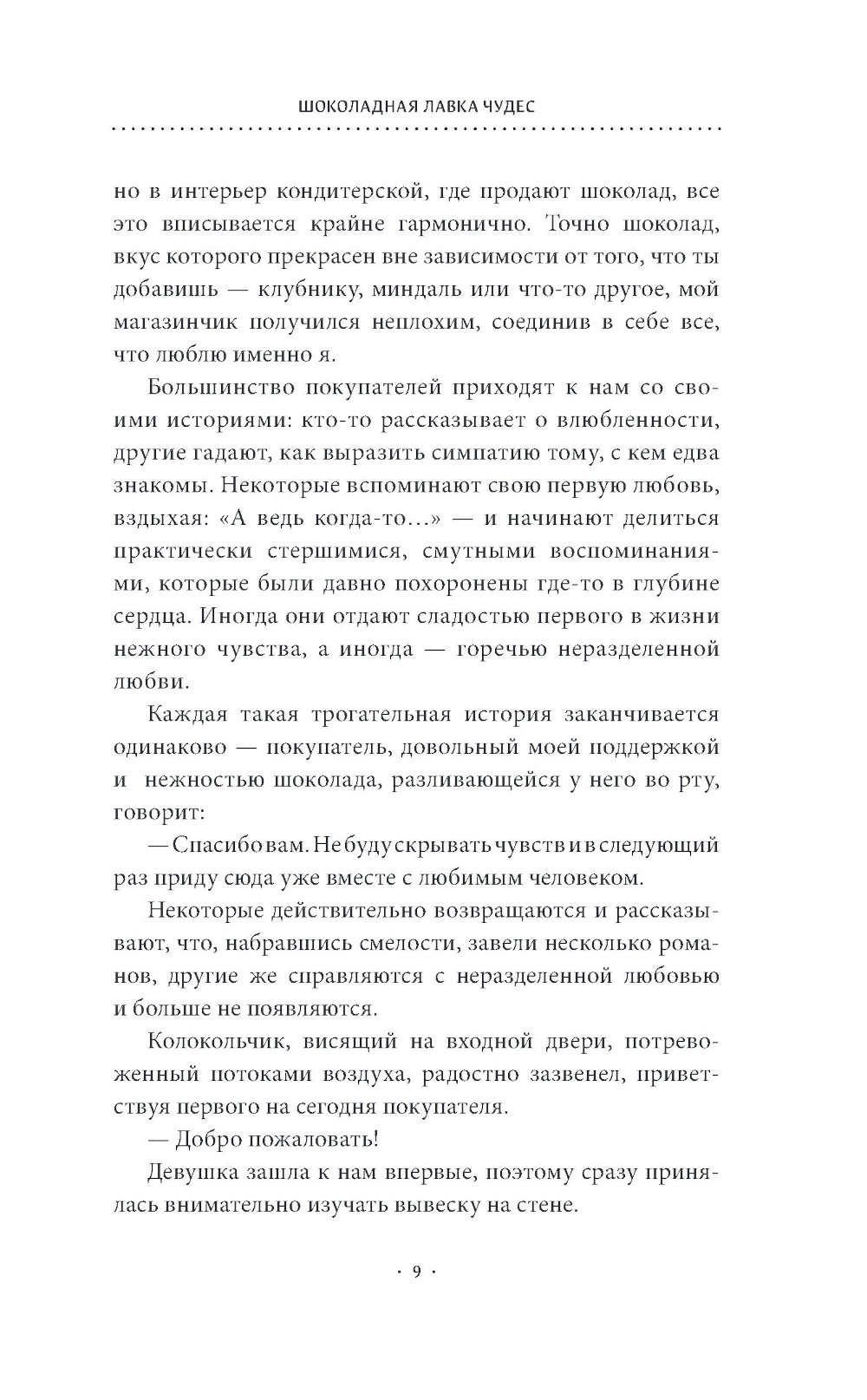 Вы любите шоколад? А от неразделенной любви когда-нибудь страдали? А вы знали, что видов шоколада очень много и что он помогает исцелять душевные раны? Владелица маленькой шоколадной лавки из Сеула Хан Чухо не только изготавливает изумительный шоколад, но и помогает своим покупателям исцелять душевные переживания. Здесь каждый не только найдет множество разнообразных десертов, но и сможет поделиться своей историей первой любви. А взамен получить сладкое «лекарство», подходящее именно ему. Сможет ли хозяйка шоколадной лавки излечить собственное сердце? Заходите насладиться изумительными десертами и узнать конец этой истории!| Издательство | АСТ |