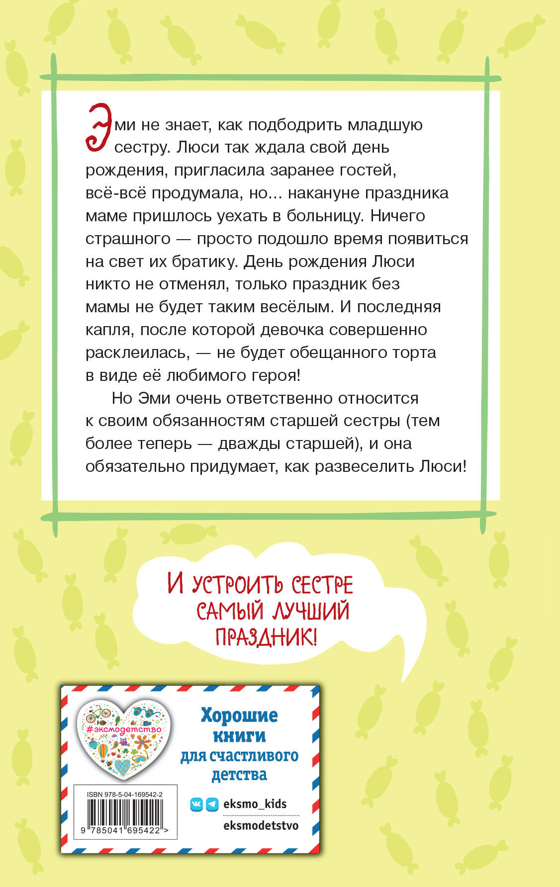 Эми всегда говорили, что быть старшей сестрой - это очень ответственно. А что значит «ответственно»? Например, попытаться подбодрить младшую сестрёнку и организовать ей праздник. Справится ли Эми? Холли Вебб - писательница, популярная во всём мире, но особенно её полюбили в России, где её книги о животных продаются миллионными тиражами. И в каждой своей истории Холли Вебб мудро и бережно рассказывает, как можно преодолеть свои страхи и разрешить свои проблемы. Все книги для детей в этой серии изданы на белой бумаге, внутри достаточно крупный шрифт и чёрно-белые иллюстрации, которые позволят детям переключать внимание, чрезмерно не нагружая глаза. Книга идеальна для родителей, которые хотят, чтобы дети втянулись в чтение, или для тех, чьи дети уже стали заядлыми читателями.| Издательство | ООО "Издательство "Эксмо" |