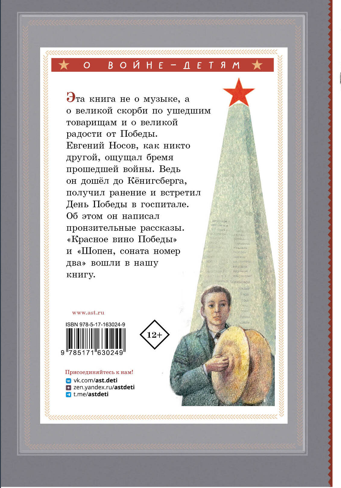 Эта книга не о музыке, а о великой скорби по ушедшим товарищам и о великой радости от Победы. Евгений Носов, как никто другой, ощущал бремя прошедшей войны. Ведь он дошёл до Кёнигсберга, получил ранение и встретил День Победы в госпитале. Об этом он написал пронзительные рассказы. «Красное вино Победы» и «Шопен, соната номер два» вошли в нашу книгу.| Издательство | Издательство "АСТ" |
