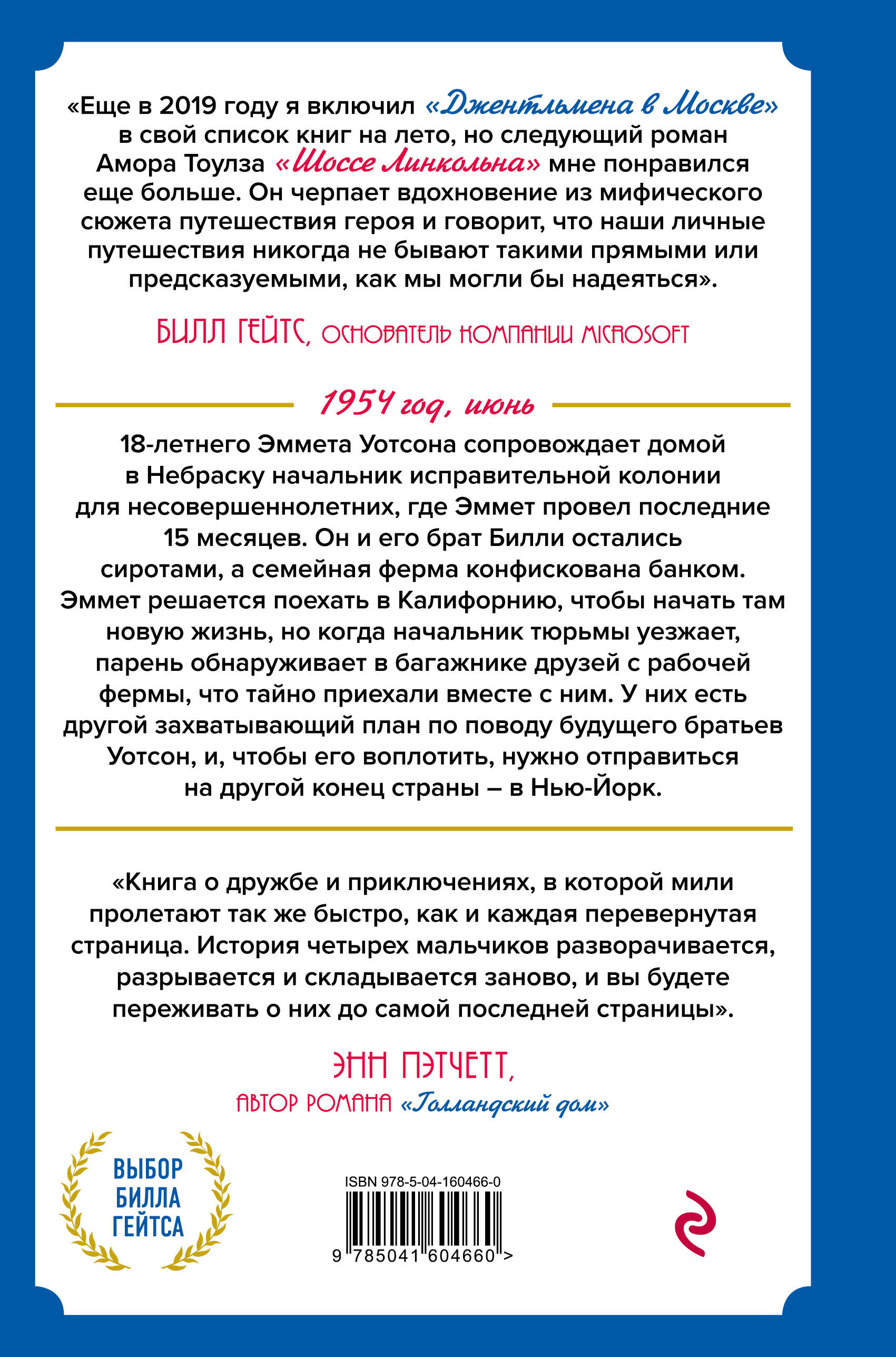 ДОЛГОЖДАННОЕ ИЗДАНИЕ! Роман Амора Тоулза «Шоссе Линкольна» сразу же стал бестселлером New York Times. В 2021 году эта замечательная история получила 1-е место в конкурсе «Лучшая книга по мнению редакторов». Уже продано более одного миллиона копий. Книга до сих пор держится в Топ-20 продаж Amazon. Около 200 тысяч пользователей поставили книге высшую оценку, и эта цифра только продолжает расти.| Издательство | Эксмо |