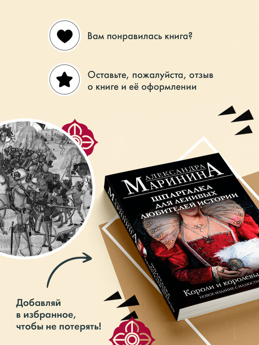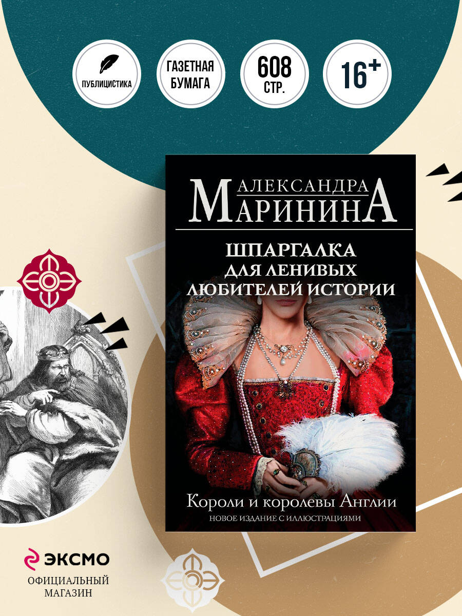Бестселлер Александры Марининой в новой авторской серии, посвященной популяризации истории. Живописная, иллюстрированная редкими изображениями панорама английской истории от Вильгельма Завоевателя до Елизаветы Второй. Остроумный взгляд на исторических персонажей, знакомых по любимым романам и кинофильмам. Жизнь правителей Англии красочно описана как увлекательный психологический сериал: в стиле драмы, триллера или комедии, в зависимости от тех ролей, которые сыграли знаменитые личности. - Отчего для королевы Виктории выйти замуж в 17 лет было рано, а королеве Матильде в 12 годков - в самый раз? - Кто из родственничков отдал приказ погубить юных наследников короля Эдуарда Четвертого, по мнению Шекспира и романистки Филиппы Грегори? - Почему у Генриха Восьмого было две жены Анны, две - Екатерины, и не все жены умерли своей смертью? И еще масса интригующих вопросов и ответов, которые в самой комфортной и увлекательной форме помогут читателям расставить в истории всё по полочкам. «То, что я пишу - ни в коем случае не учебник и даже не учебное пособие, изучать историю по этому тексту нельзя! Но можно понять, какие любопытные извивы постоянно случались в жизни монархов, чем-то заинтересоваться, копнуть чуть глубже… И в итоге уложить-таки в голове то, что требуется, но с удовольствием, а не из-под палки». - АЛЕКСАНДРА МАРИНИНА| Издательство | ООО "Издательство "Эксмо" |