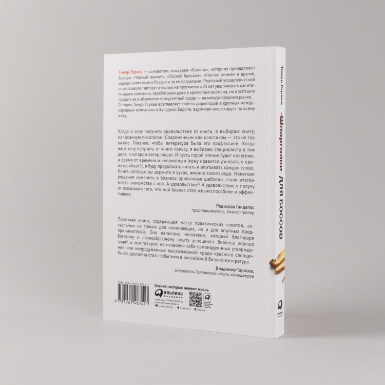 <div class="b-post-content _bookPage"><h2 id="o-chem">О чем</h2><p>На примере конкретных кейсов из собственной практики автор правдиво и иронично разбирает ключевые вопросы предпринимательства: выбор цели и постановку задач, воспитание корпоративных ценностей и определение маркетинговых доминант, выработку стратегии и действия руководителя в постоянно меняющейся и совсем недружелюбной внешней среде.</p></div>| Издательство | Альпина Паблишер |