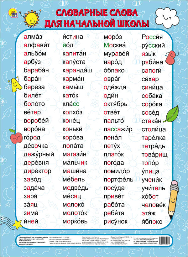 ШПАРГАЛКИ ДЛЯ МАЛЫШЕЙ. СЛОВАРНЫЕ СЛОВА ДЛЯ НАЧАЛЬНОЙ ШКОЛЫ