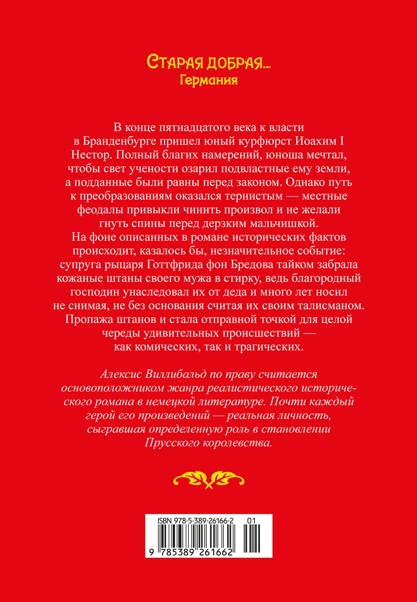 В этой истории есть все атрибуты хорошего рыцарского романа: благородный хозяин старинного замка, его преданная супруга, готовая спасти мужа от смерти, похищение старинного артефакта, заговор, предательство, казнь, страшные призраки, зловещие знамения и, конечно, любовь. Ну как же без любви? Это сейчас мы называем середину девятнадцатого века - время, когда писалась эта книга, - глубокой стариной, но Виллибальд Алексис считал, что "старые добрые времена" существовали не позднее пятнадцатого века, когда германские бароны еще носили кольчуги и щеголяли в штанах из оленьей кожи.| Издательство | Азбука-Аттикус Издат.группа ООО |