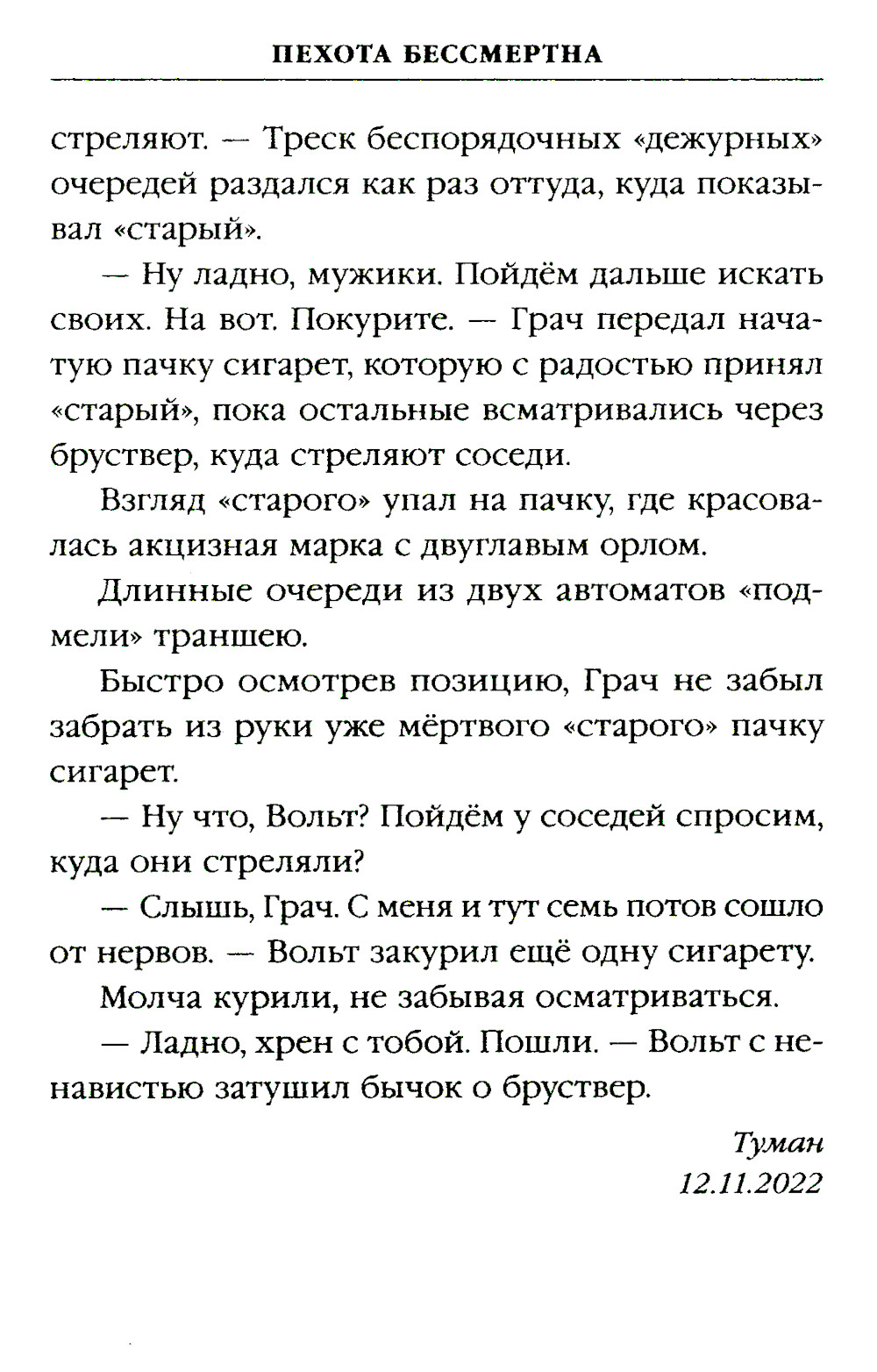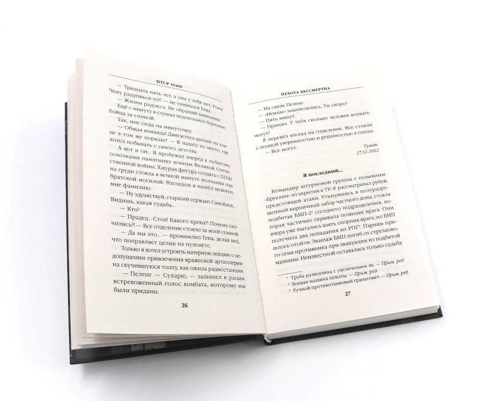 Комплект из 2 книг: «У вас нет других нас. Шторм Z» Даниил Туленков - историк, общественный деятель, публицист и предприниматель. Боец штурмовой роты Z в зоне проведения СВО (август - декабрь 2023 г.). Участник боёв за Работино и Новопрокоповку. «У вас нет других нас» - документальная автобиографическая повесть, посвященная событиям лета - осени 2023 г. в Запорожье, в разгар вражеского контрнаступления. ... Меня зовут Даниил Туленков, и сейчас я нахожусь на СВО в составе подразделения «Шторм Z». Мы выполняем те задачи, от которых отказываются другие. Такой у нас уговор. Взамен мы получаем помилование и досрочное освобождение... ... Мы «Шторм Z» - про нас кто-то, где-то, что-то слышал, но никто ничего толком не знает. Я бы очень хотел это исправить... «ПТСР team. Пехота бессмертна» Это не просто книга «про войну»... Это рассказы ветеранов, бывших и действующих военнослужащих, сотрудников силовых структур, ополченцев ЛДНР, добровольцев, бойцов различных ЧВК, том числе самой известной -Группы «Вагнер». Она написана теми, кто восстал против чумы Майдана, потерял детство и юность под ударами украинской авиации. Теми, кто долгие годы не может вернуться в свой родной дом. Теми, кто шел в атаку в песках Сирии и в руинах Бахмута. Теми, кто пришел на помощь, когда призвала Родина. Теми, кому не безразлична судьба Отчизны. Сообщество ПТСР team, объединившее их, подтолкнуло к информационной и литературной работе с началом СВО.| Издательство | Яуза-каталог |