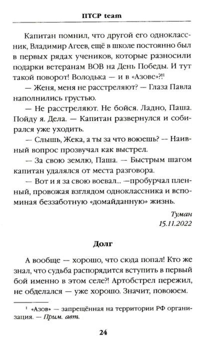 Комплект документальной прозы включает две книги о современных военных событиях, написанные непосредственными участниками и очевидцами. «У вас нет других нас. Шторм Z» - автобиографическая повесть Даниила Туленкова, участника боевых действий, рассказывающая о событиях лета-осени 2023 года в Запорожье. «ПТСР team. Пехота бессмертна» - сборник рассказов ветеранов, военнослужащих, ополченцев и добровольцев, объединённых в сообщество ПТСР team.| Издательство | Яуза-каталог |
