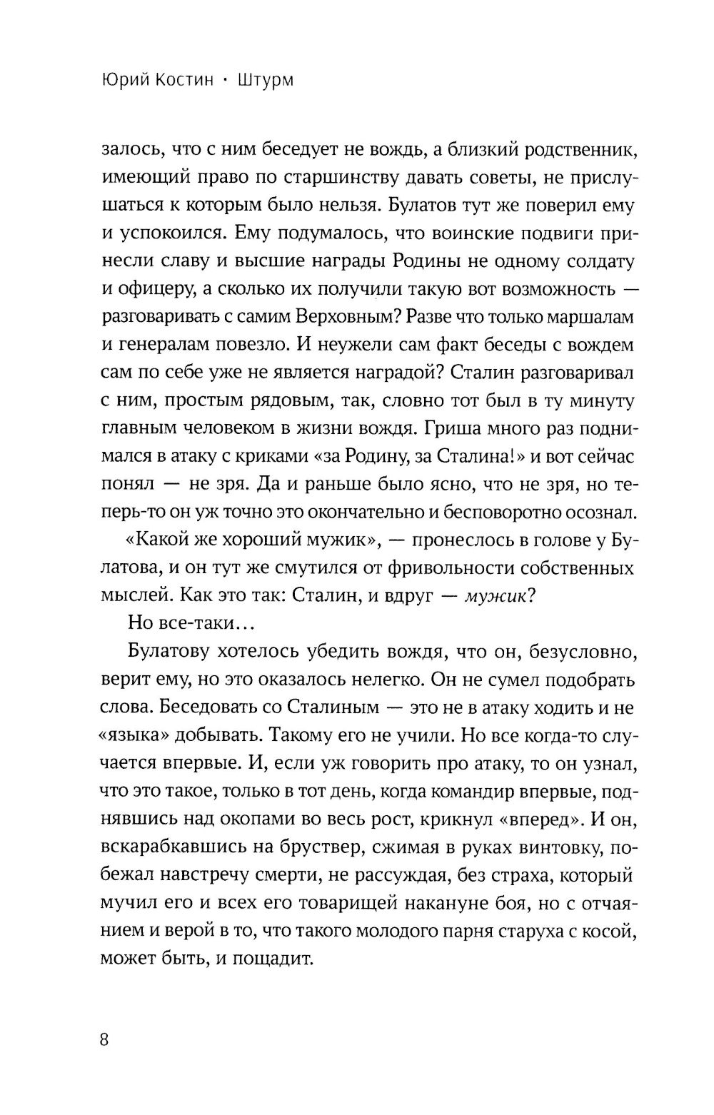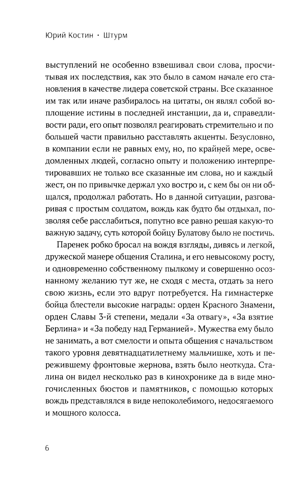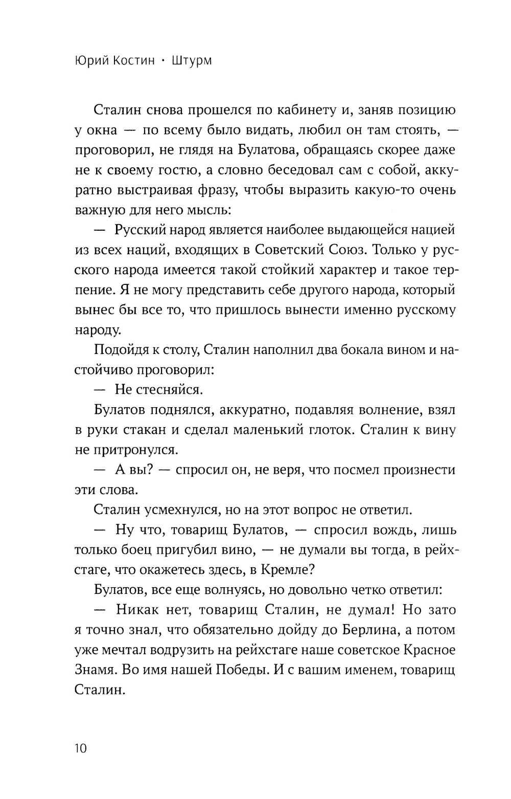 В повести «Штурм» беспрецедентно детально описывается самый драматический и славный момент Берлинской операции - взятие рейхстага и водружение над ним Знамени Победы. Действие разворачивается одновременно в наше время и в последние дни Великой Отечественной войны. В произведении фигурирует уже известный по предыдущим книгам автора благородный искатель приключений Антон Ушаков, который распутывает невероятные загадки и тайны. Подробно рассказывается о судьбах Григория Булатова, Рахимжана Кошкарбаева, Владимира Макова и других незаслуженно забытых героев штурма рейхстага. В художественное описание подтвержденных фактами событий вплетены истории, которые кажутся фантастическими. Так, после возвращения в Москву рядового Григория Булатова якобы вызывают к всесильному Сталину, с которым у него происходит доверительная беседа. Восстановлена хронология штурма цитадели гитлеризма, подробно описаны последний день жизни Адольфа Гитлера и то, что происходило в это время в Рейхсканцелярии. Однако в основе произведения человеческие судьбы, дружба, самопожертвование, подвиги простых людей.| Издательство | Проспект |